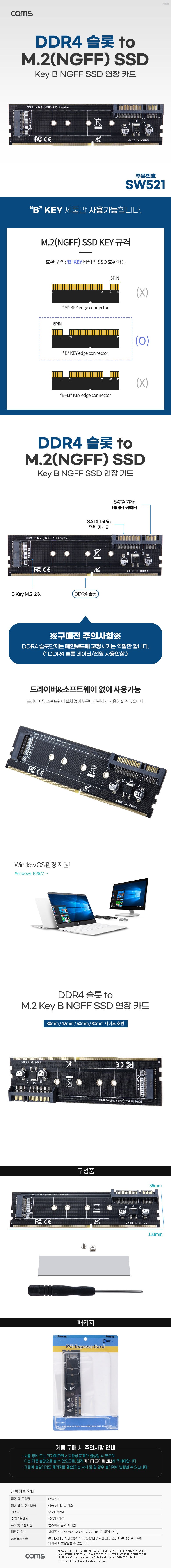 | 產品型號 | Coms DDR4 轉換轉換器 M.2 NGFF SSD Key B 轉 DDR4 SATA 22P 轉換卡 SW521 | 原產地 | 中國 |