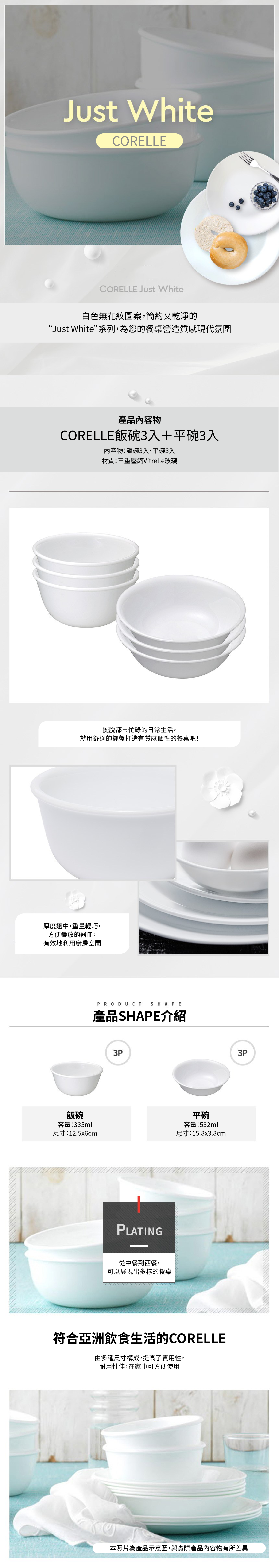 - 康寧餐具淨白系列,採用輕巧耐用的三層強化玻璃材質,讓您輕鬆享受美食。