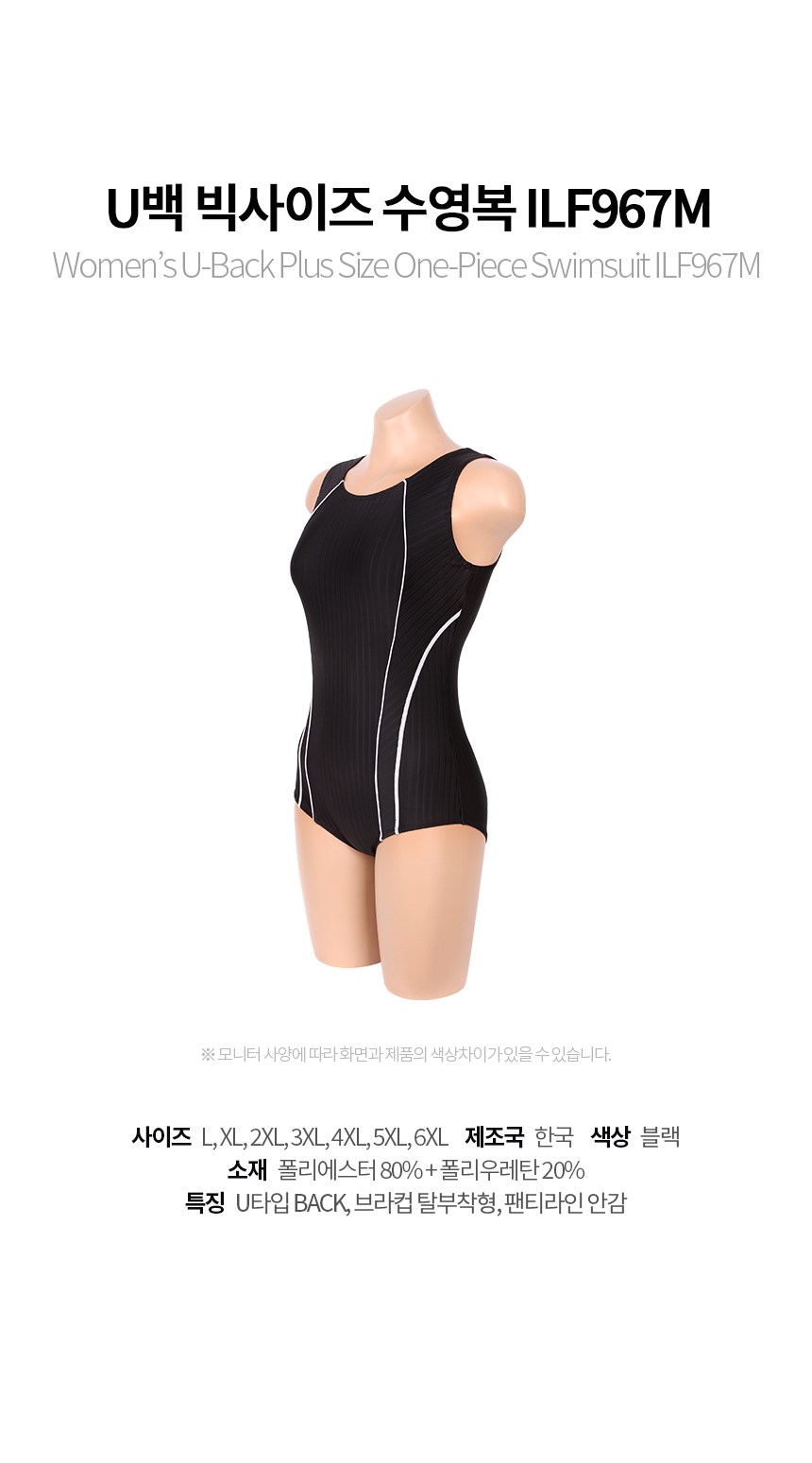 Cuaro女式U型背大碼泳衣專為室內游泳和水中有氧運動設計。U型美背設計展現女性優美線條,大尺碼設計提供舒適的穿著體驗。採用高彈性布料,讓您在水中活動自如。隨泳衣附贈胸墊,提供更佳的胸部支撐。這款泳衣在韓國製造,品質優良,是您享受水上運動的理想選擇。黑色經典配色,時尚百搭。