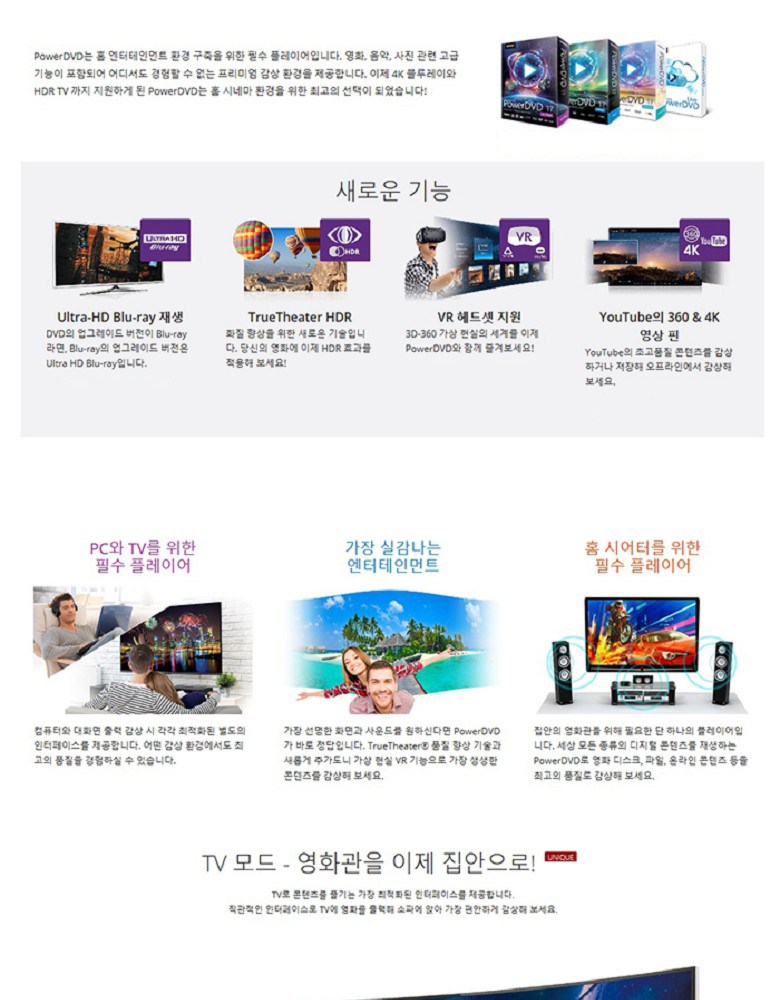 CyberLink PowerDVD 17 Ultra是構建家庭娛樂環境的必備播放器,提供電影、音樂、照片相關的高級功能,讓您隨時隨地都能體驗優質觀賞環境。它支援4K藍光和HDR電視,是家庭劇院環境的最佳選擇。透過TrueTheater畫質提升技術和新增的虛擬實境VR功能,享受最生動的內容。PowerDVD 17 Ultra可播放世界上所有類型數位內容,以最高品質欣賞電影光碟、檔案、線上內容等。現在就把電影院搬回家,享受最逼真的娛樂體驗。