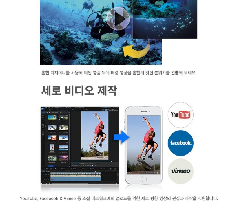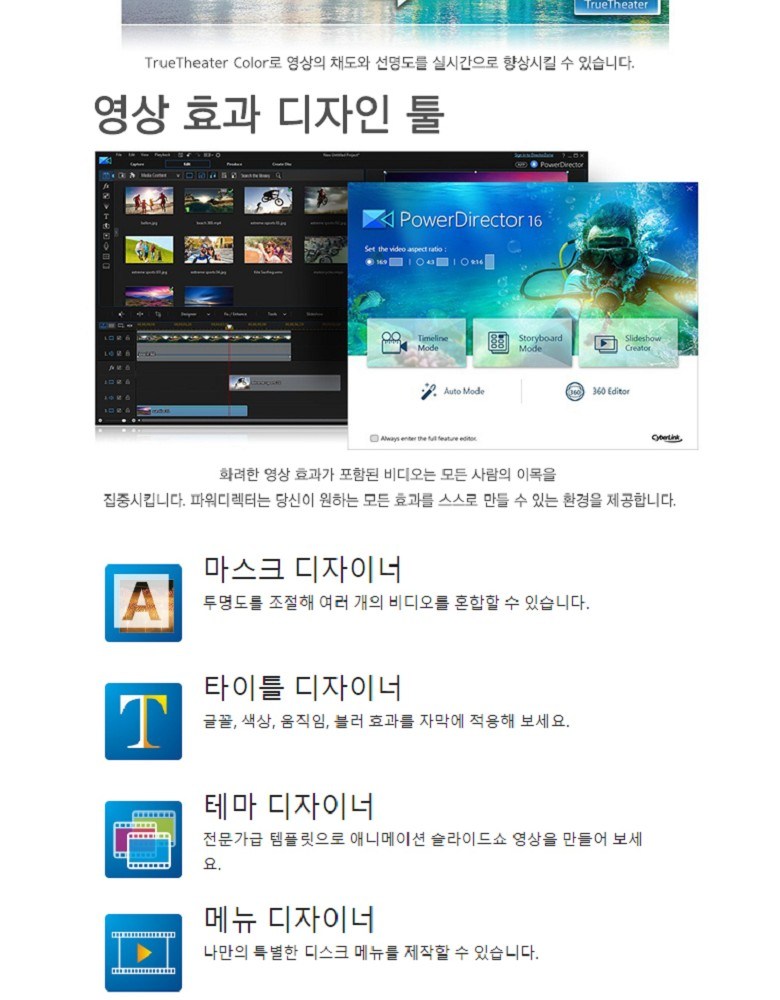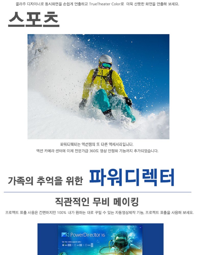 - 威力導演提供直覺操作介面,讓您輕鬆編輯家庭、旅行及運動等主題影片,快速上手。