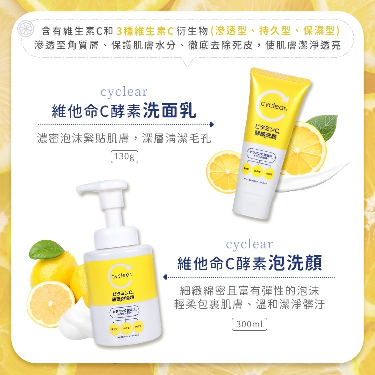 - - 享受維他命C酵素洗面幕斯,輕柔泡沫深入毛孔,洗後肌膚清爽不緊繃,感受細緻呵護。