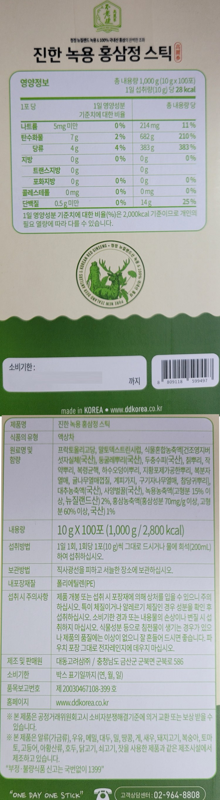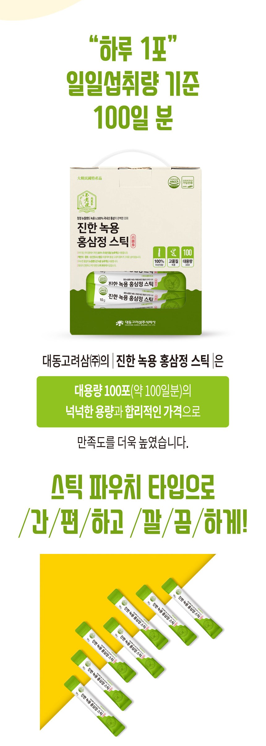 DAEDONG KOREA GINSENG 濃郁鹿茸紅蔘精條, 100個, 10g
