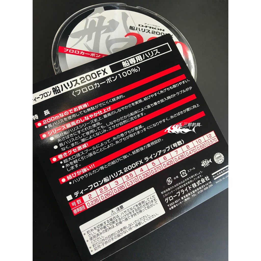 釣線 D-FRON 船用子線 200 FX是專為船釣設計的優質釣線,長達200米,6號線徑,提供足夠的長度和強度應對各種船釣環境。採用100%氟碳纖維材質,具有出色的耐磨性和低延展性,即使在複雜的水下環境中也能保持高度靈敏,保證釣獲率。D-FRON船用子線系列以其卓越的柔軟度和高強度而聞名,能有效減少纏繞,讓釣餌更自然地呈現,提高魚兒上鉤的機率。日本製造,品質保證,是船釣愛好者的理想選擇,助您在海上滿載而歸。