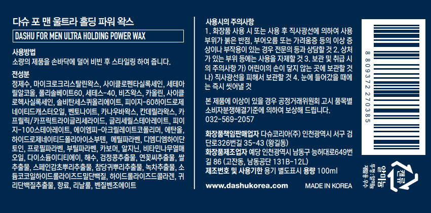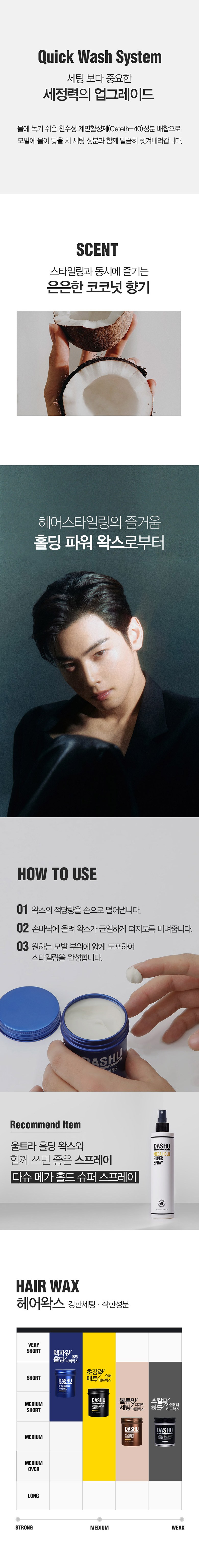 - DASHU髮蠟提供超強定型力,能長時間維持髮型,展現多變風格。