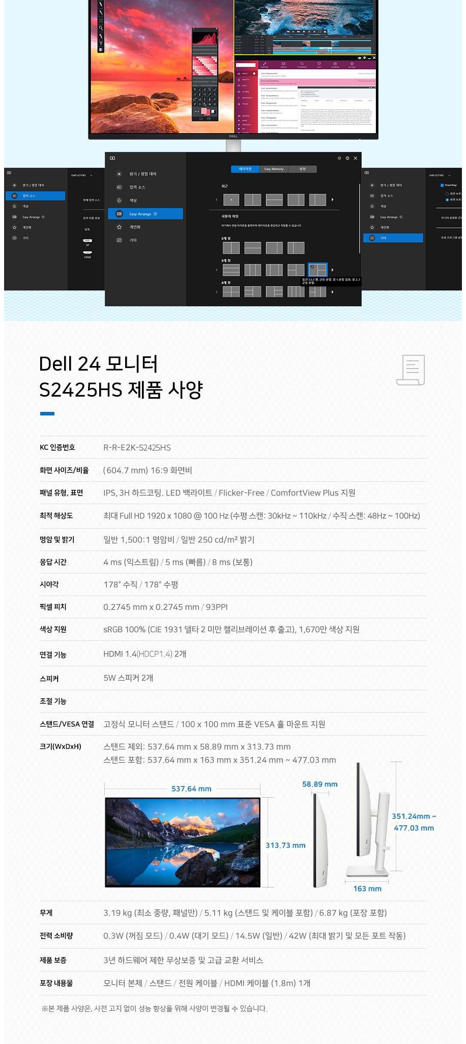 DELL超窄邊框顯示器S2425HS,採用IPS面板技術,提供178°廣視角,確保從任何角度都能欣賞到一致的色彩與清晰度。內建雙5W喇叭,無需額外設備即可享受高品質音效。100Hz更新率和4ms反應時間,無論是日常工作、影音娛樂還是休閒遊戲,都能提供流暢的視覺體驗。超薄邊框設計,即使多螢幕並排使用,也不會佔用過多空間。此外,Dell Display Manager軟體提供便捷的顯示器控制,讓您輕鬆調整螢幕設定。