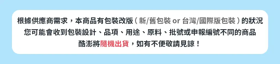 | 可申請換貨/退貨的時間 | · 若顧客改變心意,且產品不受下列任何一項換貨/退貨限制,顧客可在收到火箭速配產品後15天(WOW會員30天)內申請換貨/退貨 · 若產品內容與標示或廣告不符,或收到產品時已存在瑕疵,顧客可在收到產品起3個月內換貨/退貨(若該產品有標示賞味期限或有效期間,則必須於該賞味期限或有效期限內提出請求) · 與產品有關的一切資訊、圖片、說明及其他相關資訊,皆以火箭速配廠商提供並上傳的產品頁面為準。若發現產品缺失,敬請不吝提出詢問,酷澎線上交易平台將進行確認並立即處理 · 若使用美容產品出現問題(過敏、起紅疹、發癢、刺痛),顧客可憑診斷證明書或醫師證明(相關成本應由顧客自行負擔)申請退款 |