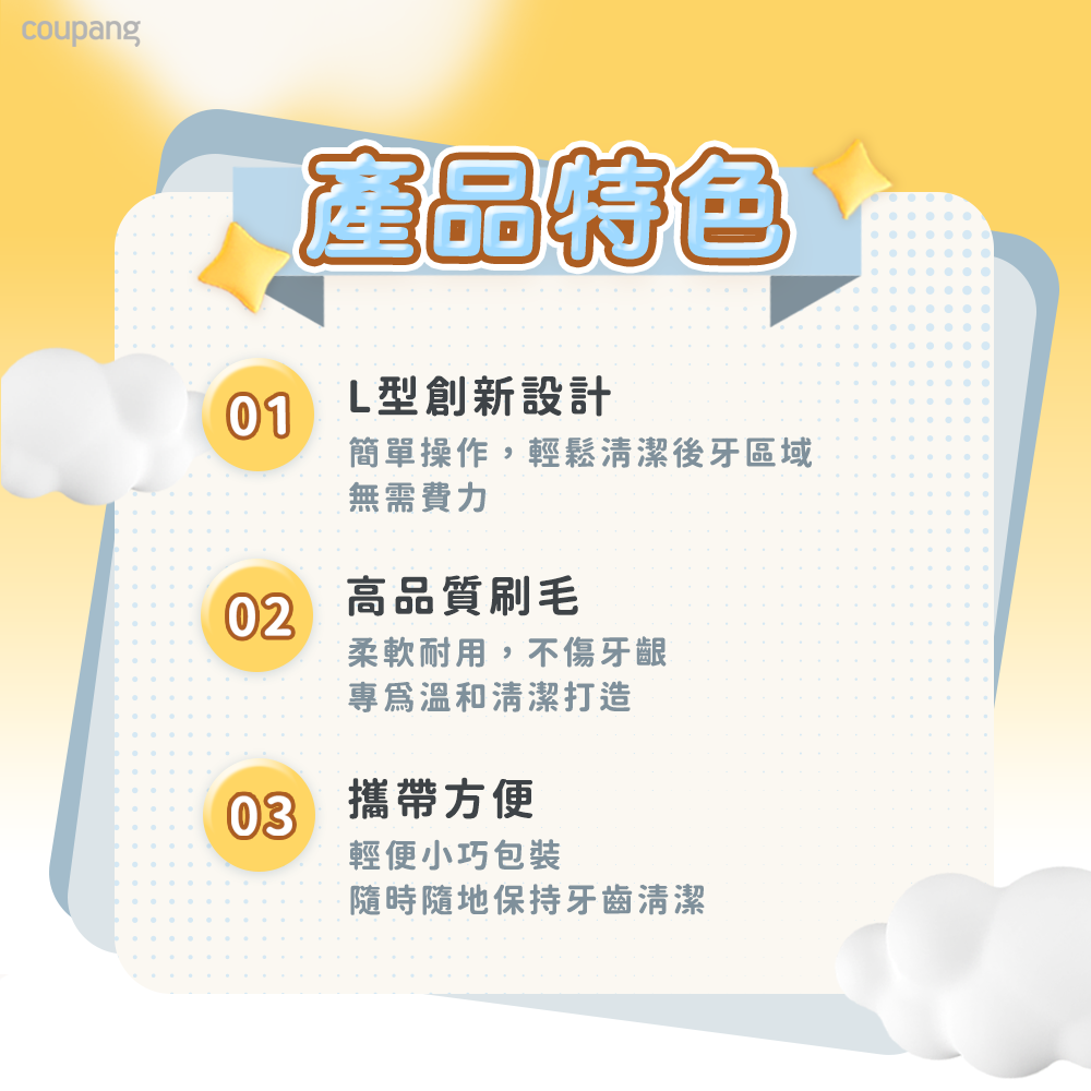 ・L型設計,不需彎曲即可輕鬆潔牙