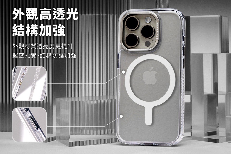 - 標準磁吸功能讓無線充電更便捷,無需取下手機殼即可充電。