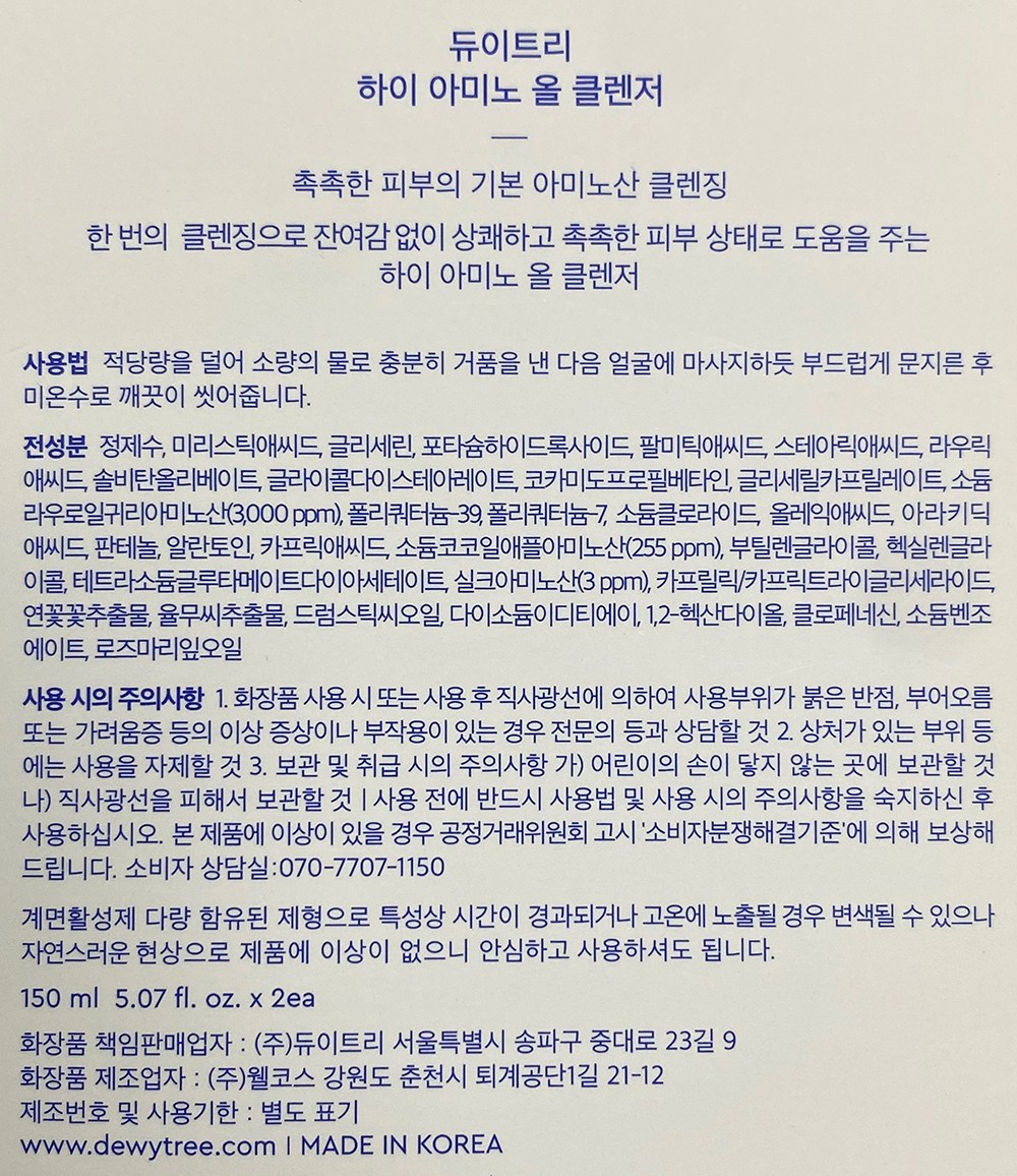 DEWYTREE Hi Amino 胺基酸保濕洗面乳,採用溫和胺基酸配方,能有效清潔臉部髒汙及多餘油脂,同時維持肌膚的保濕度。洗後肌膚不緊繃,感覺清爽舒適。綿密的泡沫能深入毛孔,徹底清潔毛孔內的汙垢,讓肌膚恢復潔淨。添加蘋果萃取,使洗後肌膚更加柔嫩光滑。適合各種膚質使用,讓您每天都擁有健康水潤的肌膚。