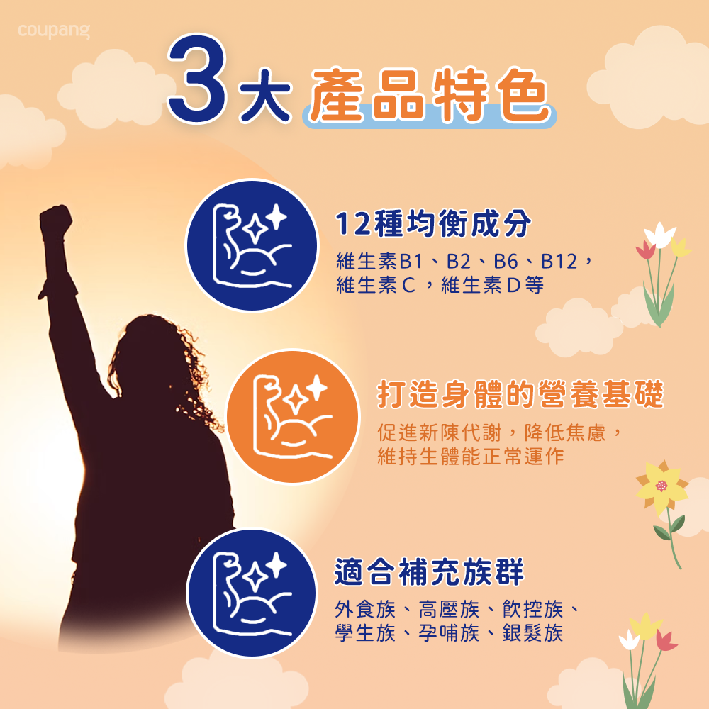 - DHC綜合維他命富含多種維生素,有助於增強體力,讓您每天都充滿活力與朝氣。