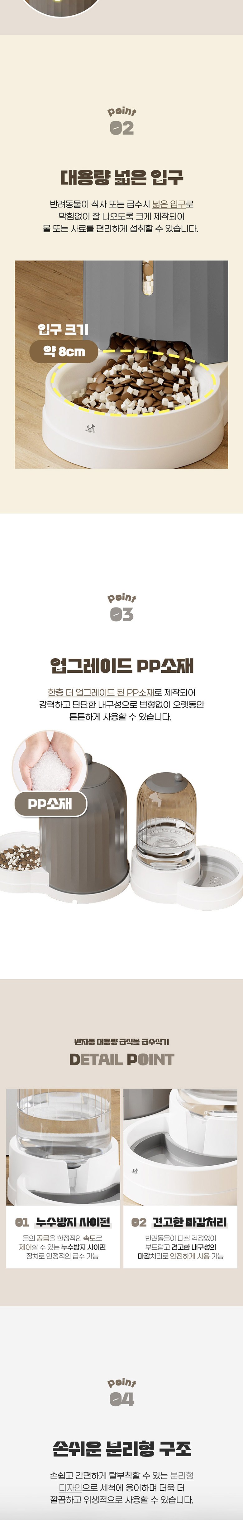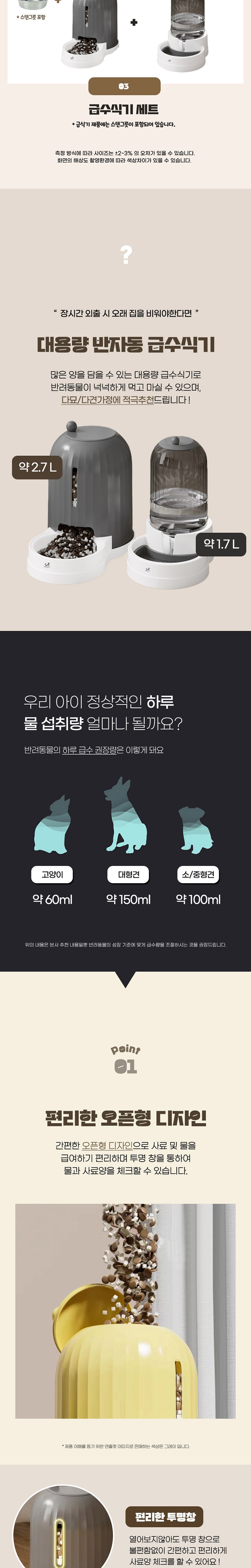 - 大容量儲存空間,減少飼料或水的補充頻率,特別適合忙碌的飼主或多寵家庭使用。