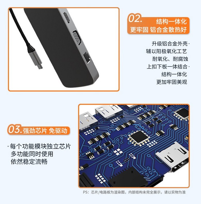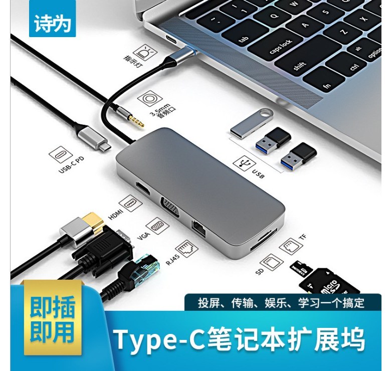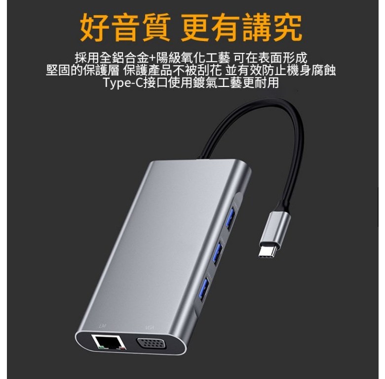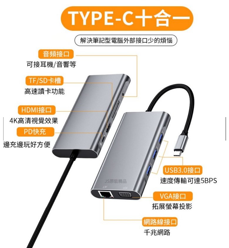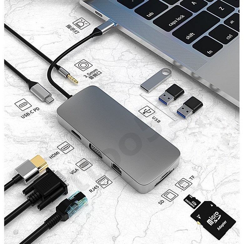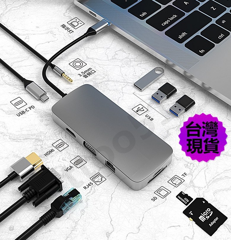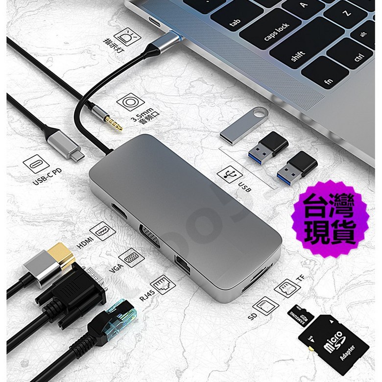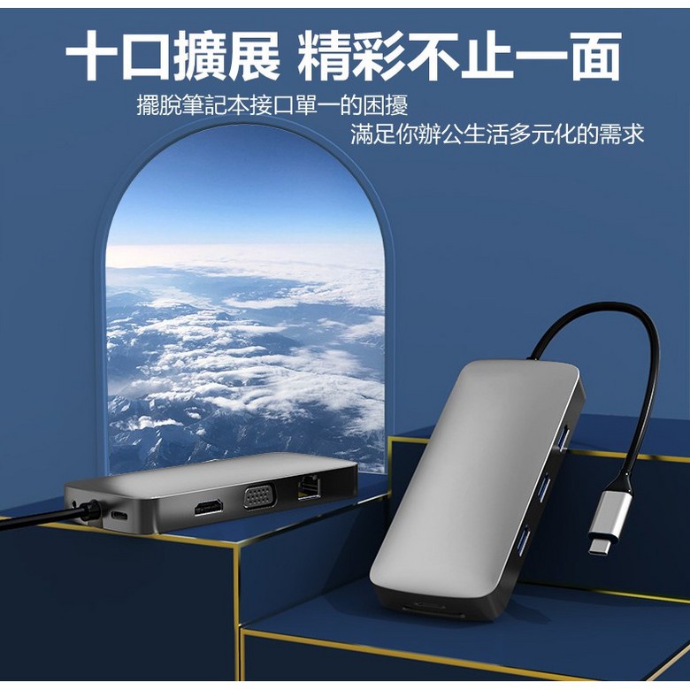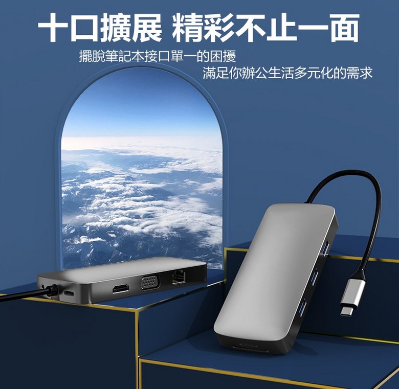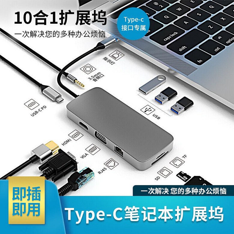 DINOSAVS Type-C筆記本擴展塢,10合1多功能擴展器,高速數據傳輸,即插即用, 3002六合一, 1個