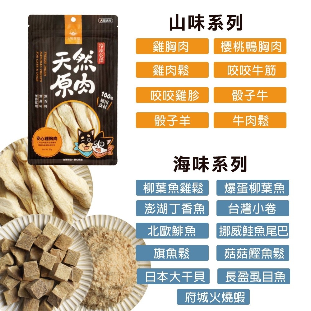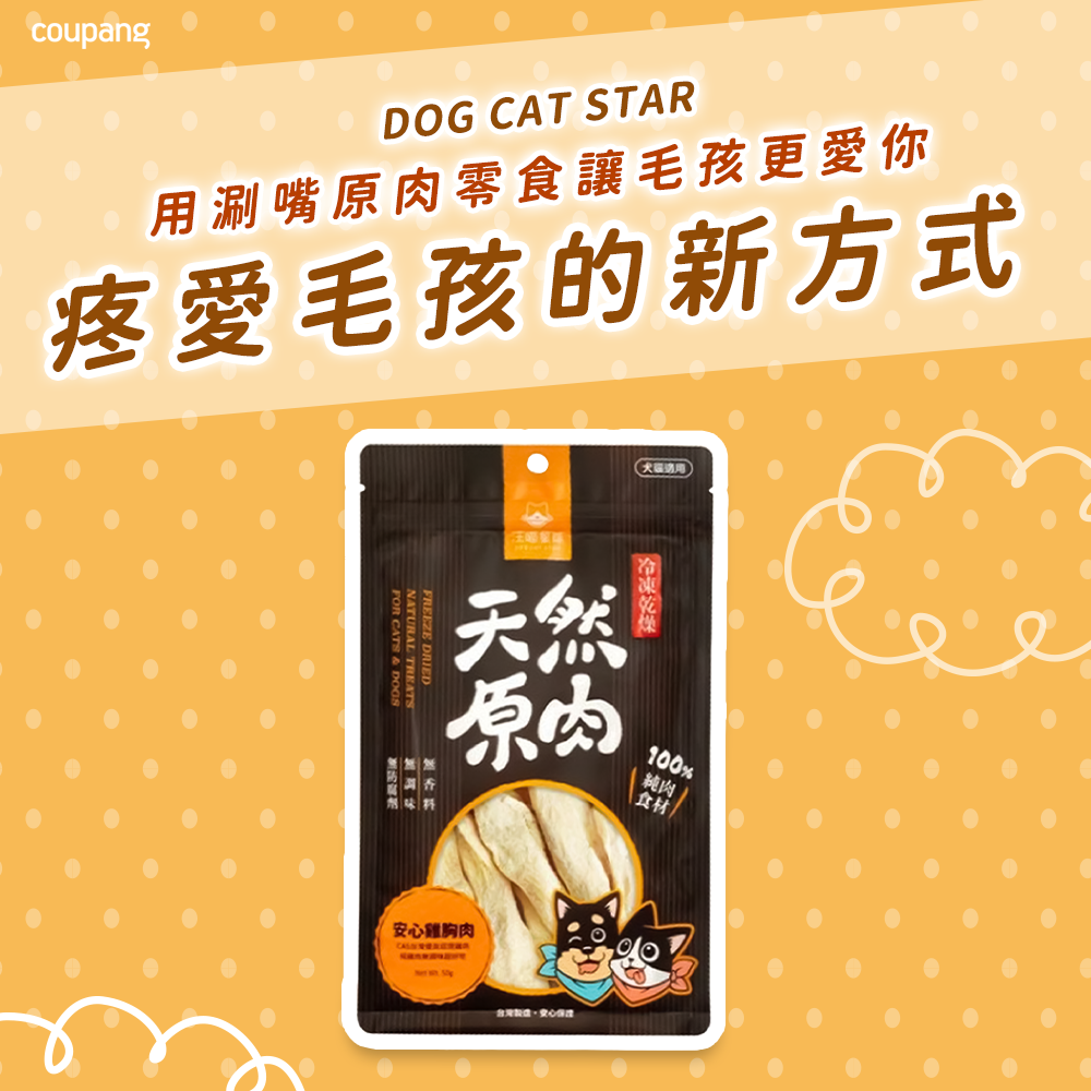 DOG CAT STAR 汪喵星球天然原肉冷凍乾燥小零嘴,安心雞胸肉口味,是您寵愛毛孩的理想選擇,無添加防腐劑、調味料及香料,確保毛孩食用安全又健康。冷凍乾燥技術完整保留雞胸肉的營養與美味,口感酥脆,讓毛孩愛不釋手。每包50g的份量,適合各種體型的狗狗和貓咪。無論是訓練獎勵或日常小點心,讓牠們更愛您。