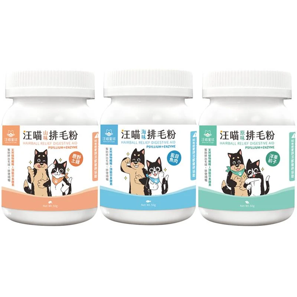 DOG CAT STAR 汪喵星球 犬貓用 排毛粉 含膳食纖維 促進消化 幫助毛孩便便順利排出, 糞便潤滑 + 溫和排毛, 50g, 1罐