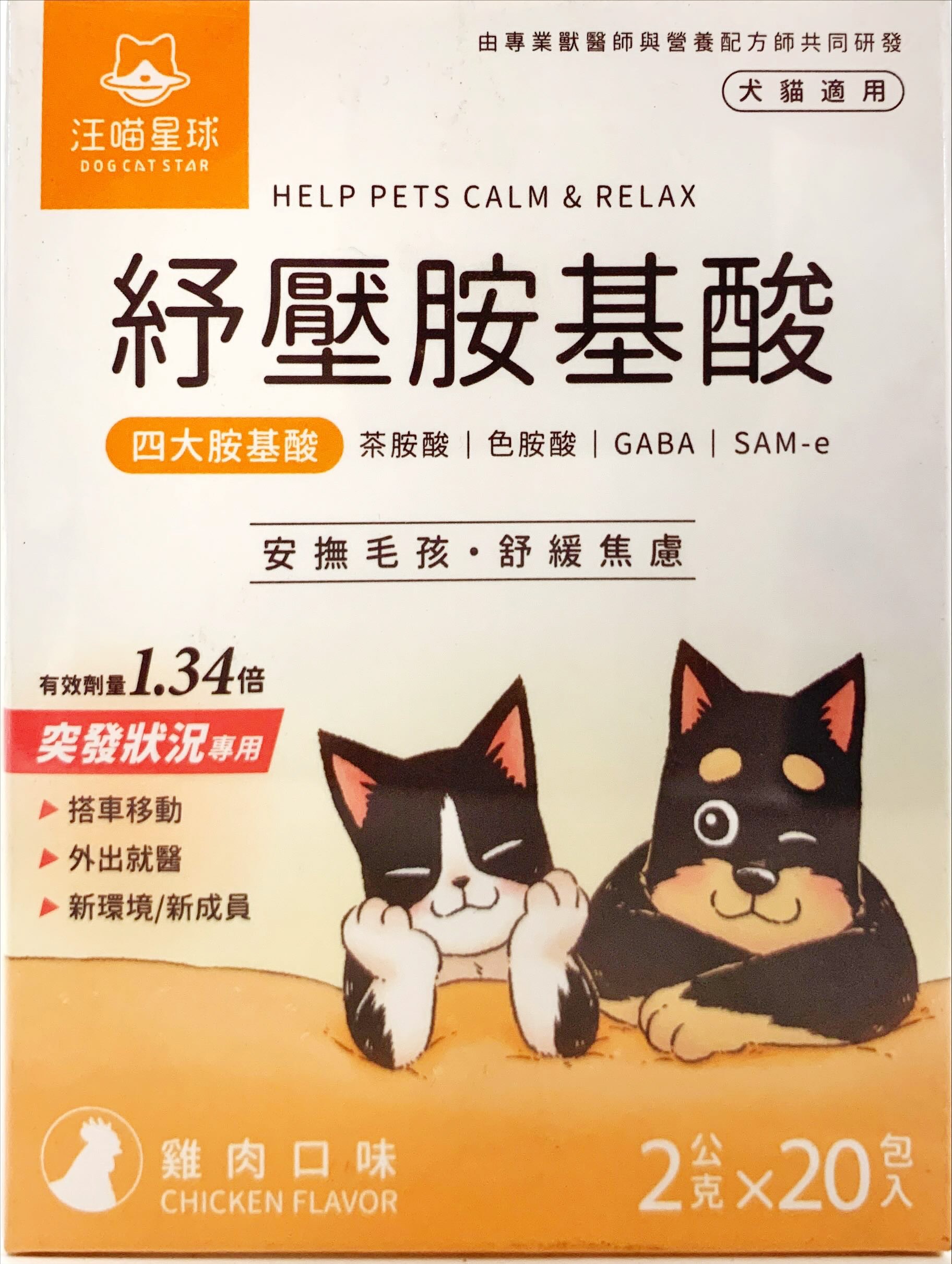DOG CAT STAR 汪喵星球 紓壓胺基酸 雞肉口味 四大胺基酸, 20包, 40g, 壓力緩解/安撫情緒/注意力集中, 1盒