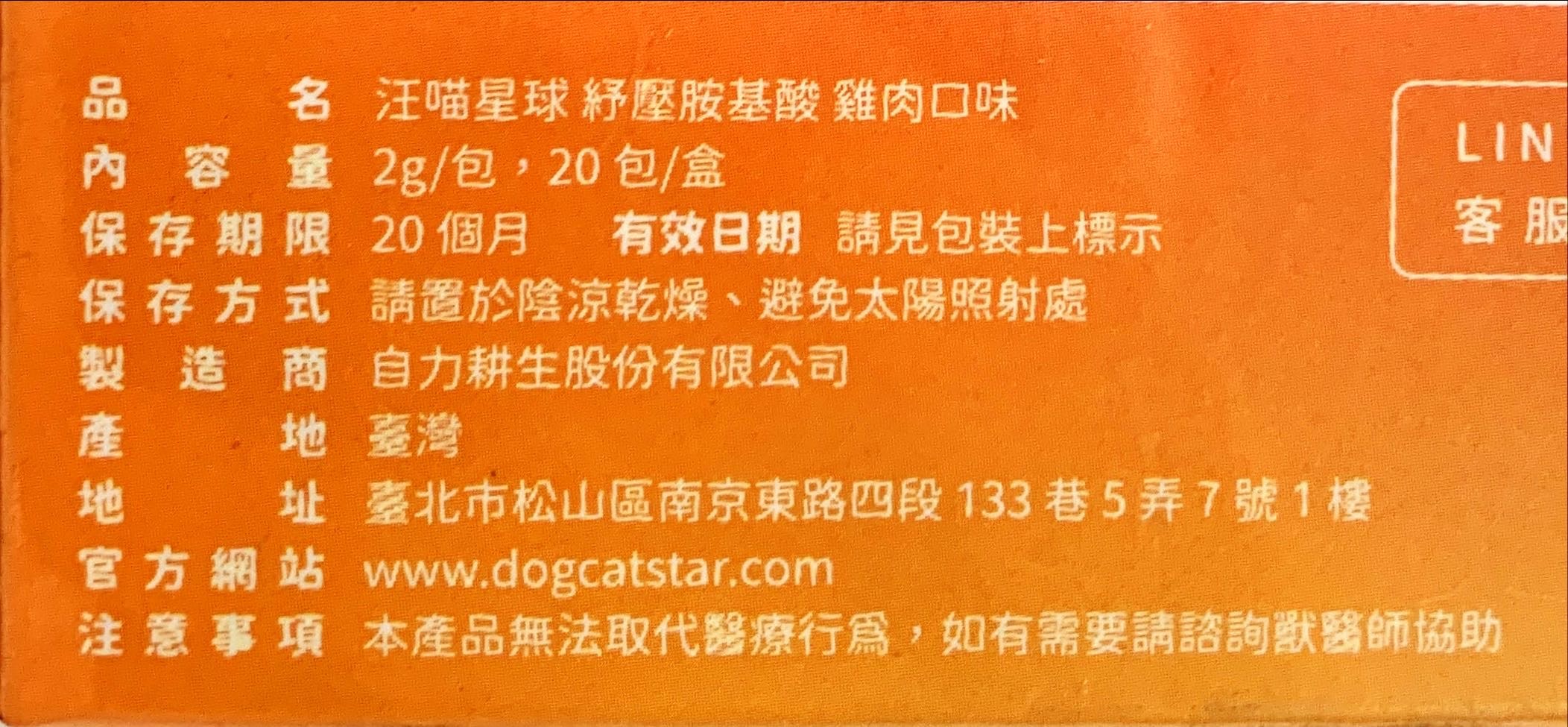 - 汪喵星球胺基酸,美味雞肉口味,讓毛孩享受舒壓時光,輕鬆無負擔。