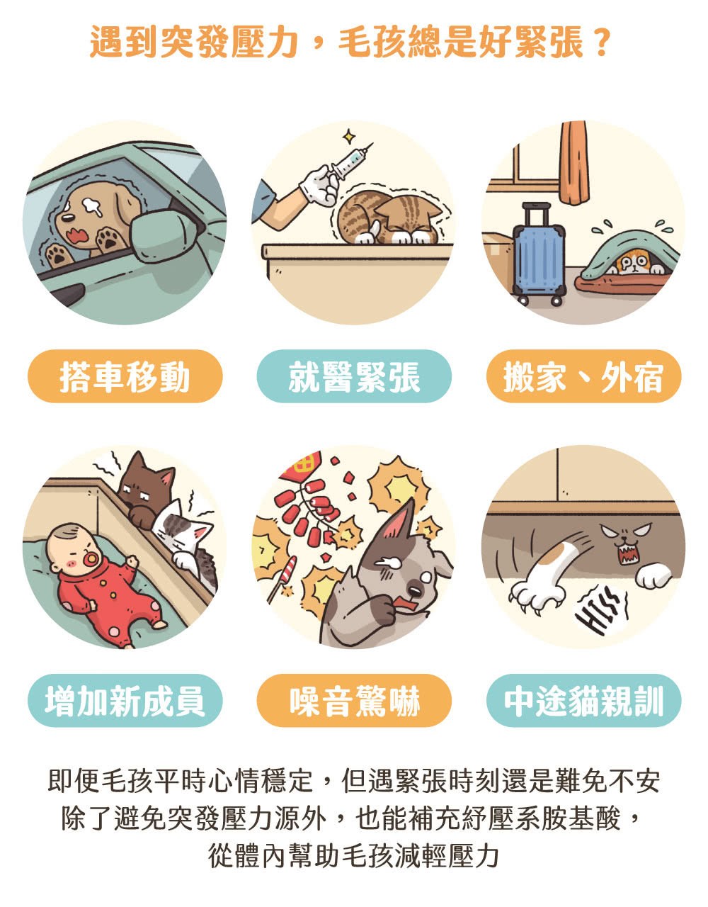 - 特別適合在旅行、搬家或看醫生等壓力情境下使用,幫助毛孩適應環境。