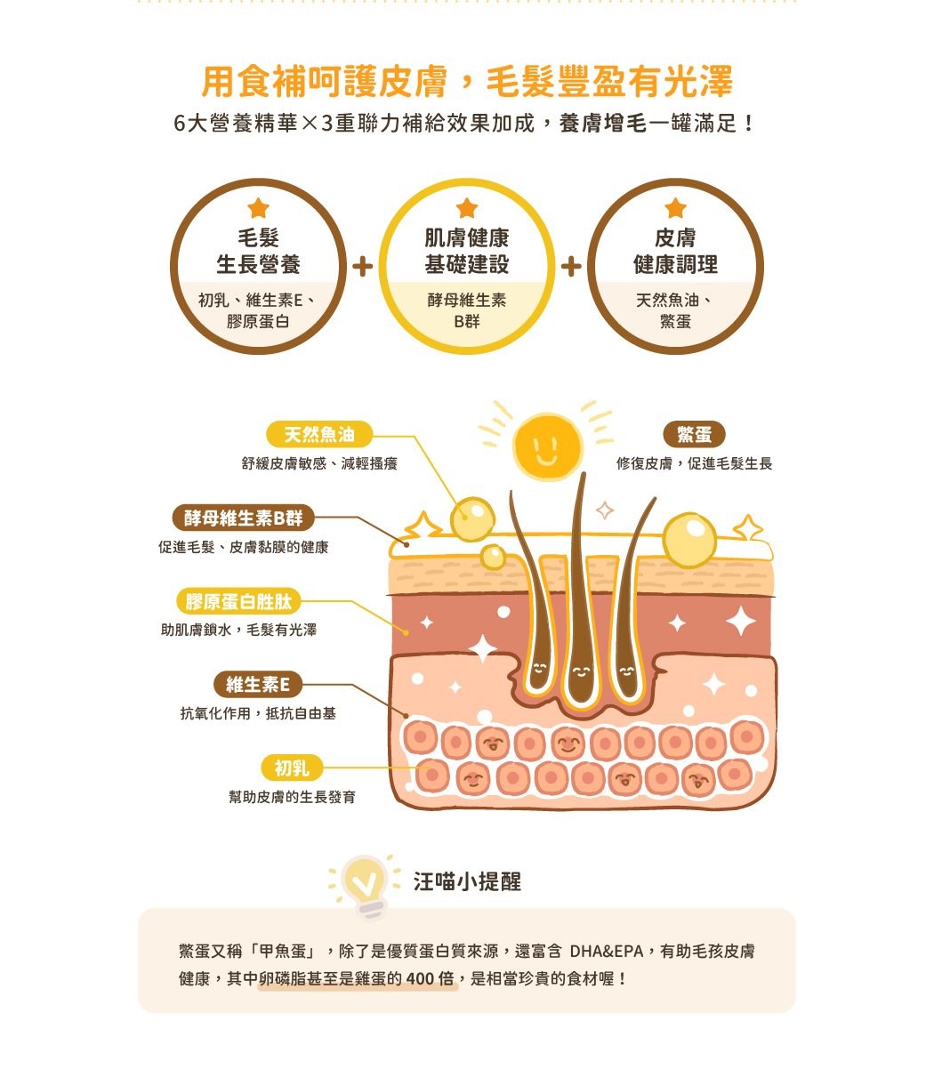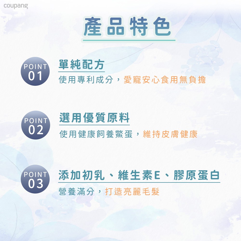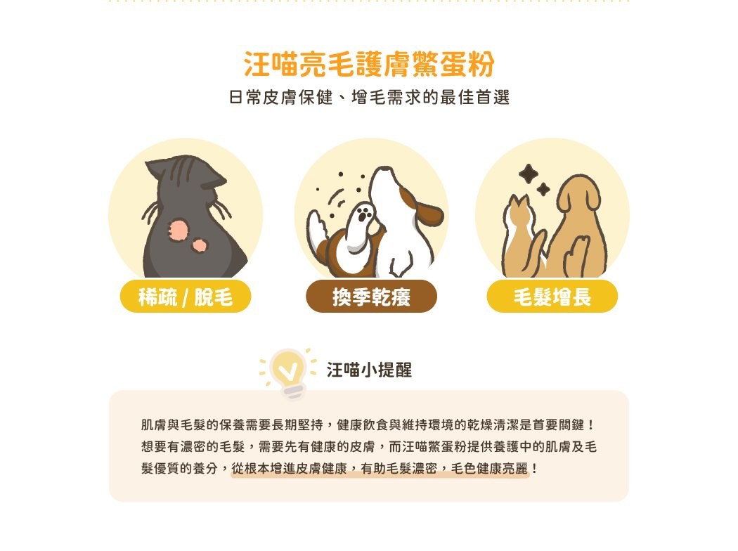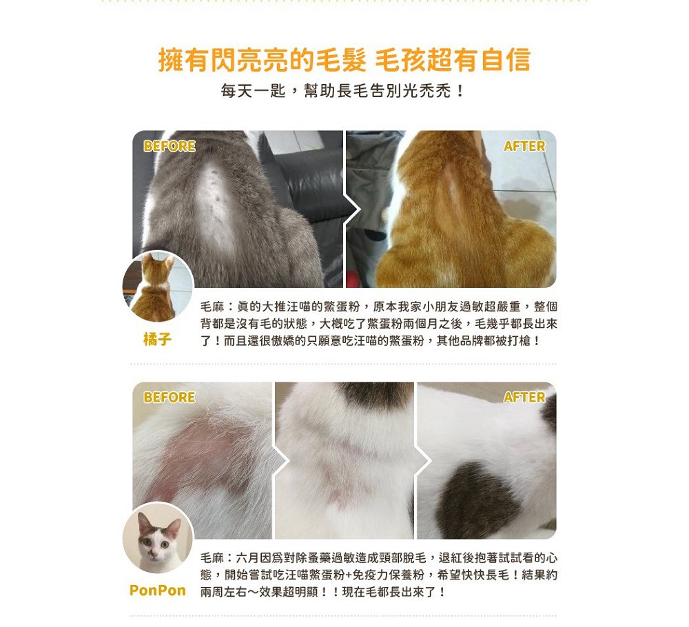 - 汪喵星球鱉蛋粉,富含卵磷脂,讓毛孩擁有柔亮光澤的健康毛髮,展現迷人風采。