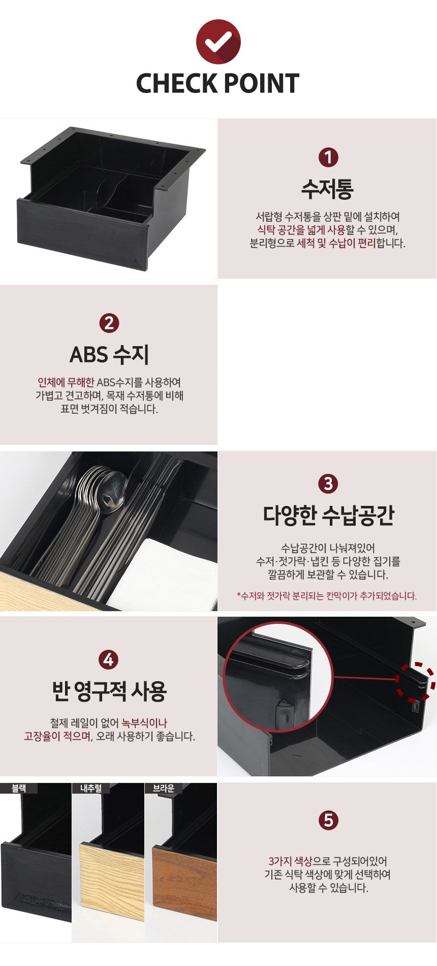 - 抽屜式設計充分利用桌面空間,讓餐桌保持整潔,不再雜亂無章。