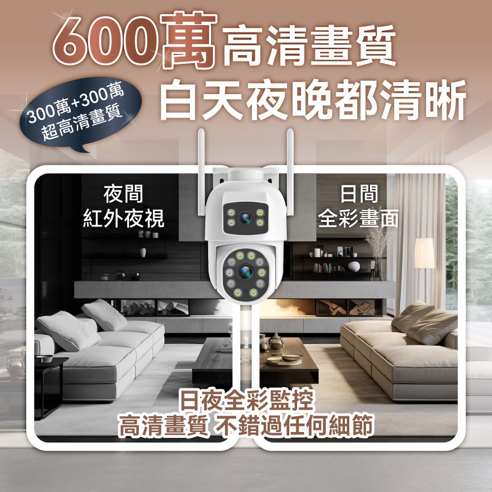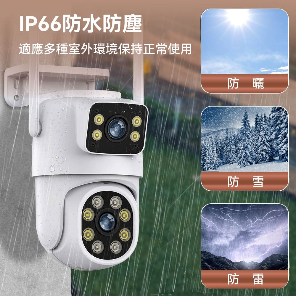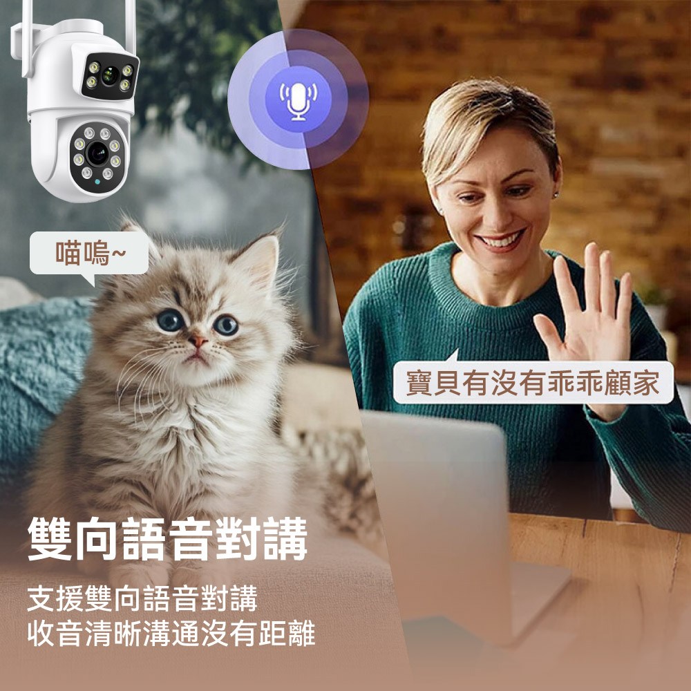 - 一機雙畫面設計,上下鏡頭聯動,讓您同時監控兩個不同區域,告別傳統監控的盲區隱患。