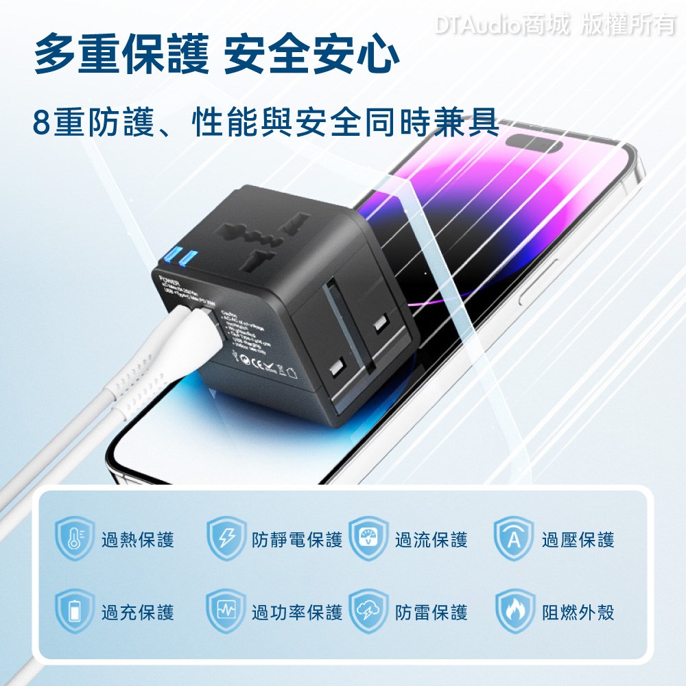 這款萬國旅行充電器是您環遊世界的最佳夥伴。它不僅支援全球180多個國家和地區的插座標準,讓您的MacBook Pro在短短2小時內即可充滿電。可同時為多個設備充電,解決您的充電需求。內置可恢復性保險絲和多重安全保護機制,包括過溫、過流、過壓、過充、短路和過載保護,確保您和您的設備安全無虞。黑色外觀簡約時尚,體積小巧方便攜帶,是您旅行時不可或缺的充電神器。