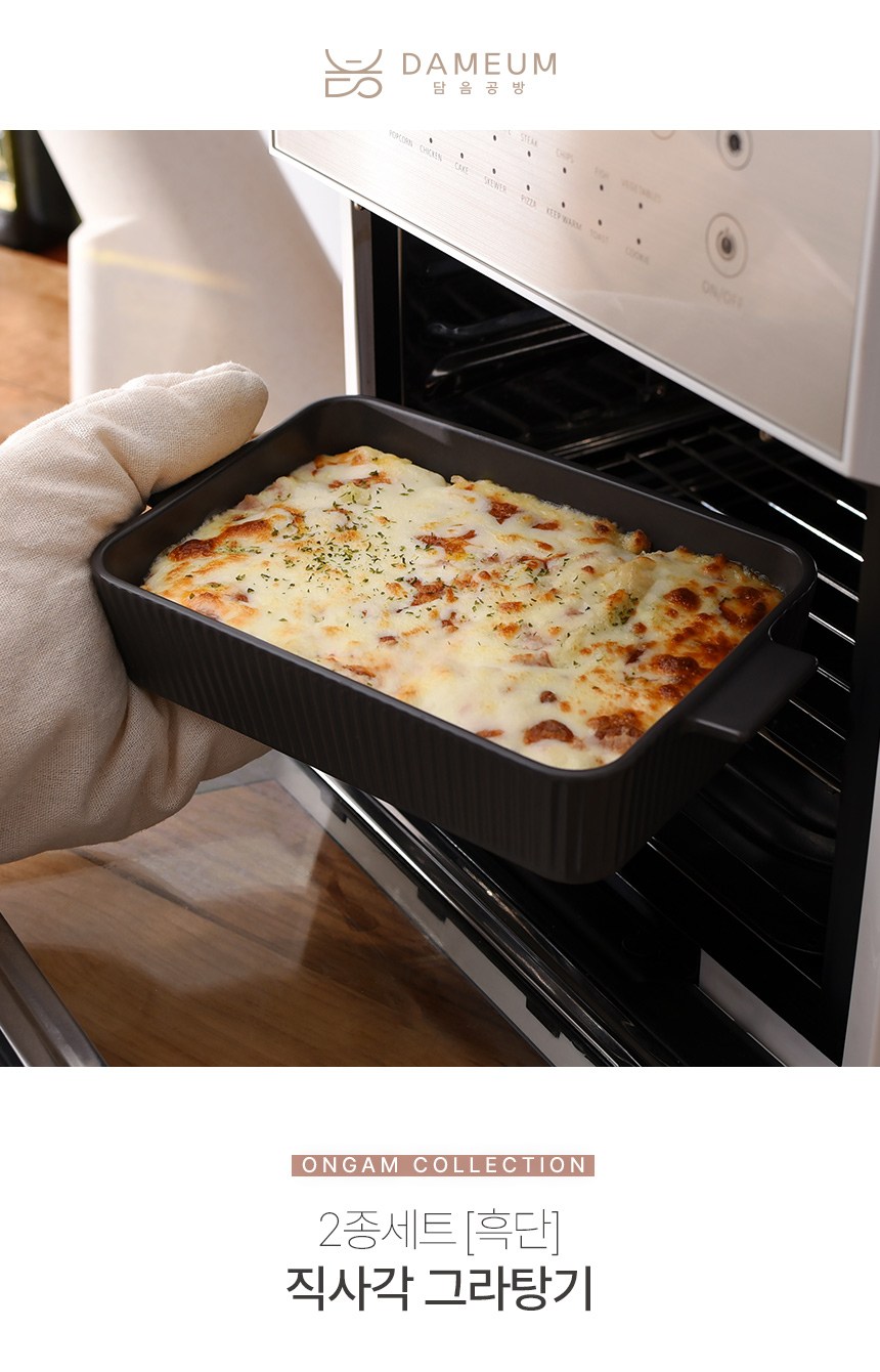 ■ 曜黑:如黑曜石般深邃的黑色,為餐桌增添沉穩氛圍,與其他色彩相互調和。 2. 넉넉한 용량 & 손잡이:加深設計,容量更大,方便盛裝各種料理。貼心手柄設計,方便拿取,避免燙手。 3. 溫暖樸實的設計:柔和的大地色系,為餐桌增添溫馨氛圍,適合搭配各種風格的餐具。 4. 多種用途:適用於烤箱料理、義大利麵、沙拉、炒飯、韓式烤肉沾醬等,一盤多用。 「溫感」系列長方形烤盤,讓您輕鬆享受料理的樂趣,為餐桌增添溫暖氛圍。