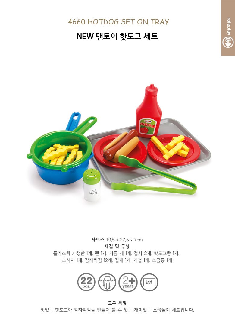 dantoy 熱狗套餐扮家家酒玩具組,讓孩子們在家也能體驗製作美味熱狗和薯條的樂趣。這款玩具組包含多種配件,如熱狗麵包、香腸、薯條、番茄醬和鹽罐等,讓孩子們可以盡情發揮想像力,模擬真實的烹飪場景。透過角色扮演,孩子們可以學習社交互動和溝通技巧,增進親子關係。Dantoy 玩具採用可使用的乾淨原料,在丹麥製造,並通過多項安全認證,讓家長們可以安心選購。這款玩具組不僅能為孩子們帶來歡樂,還能培養他們的創造力和想像力。