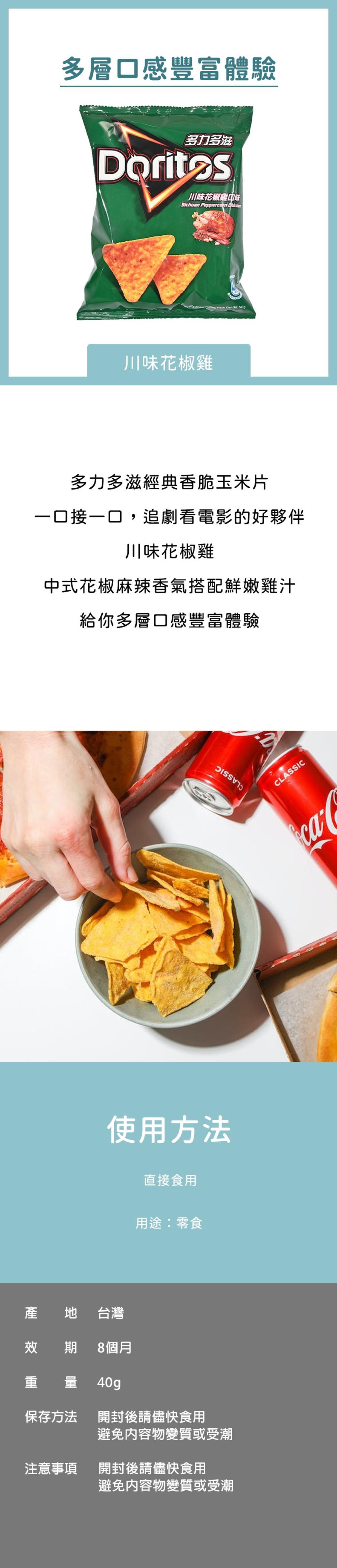 - - 追劇、電影時光的最佳零食夥伴,一口接一口,享受多力多滋帶來的美味。