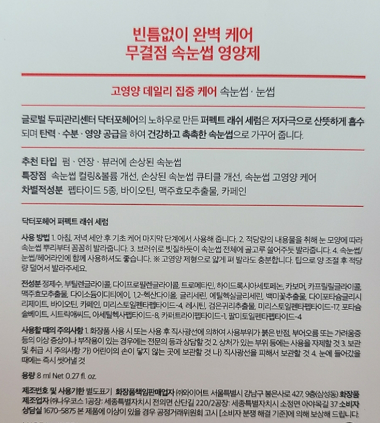 Dr.FORHAIR 高營養集中護理完美睫毛精華,為您打造健康水潤的迷人睫毛。這款精華蘊含多種營養成分,能深入滋養睫毛,使其更加強韌,並改善睫毛的捲翹度和豐盈感。清爽的水性質地,不油膩、不黏膩,能快速吸收,讓您輕鬆進行早晚護理。無論是因燙髮、嫁接或睫毛夾而受損的睫毛,都能得到有效的修護,重現健康光彩。使用後,睫毛將更加柔順,角質層損傷也能得到改善。