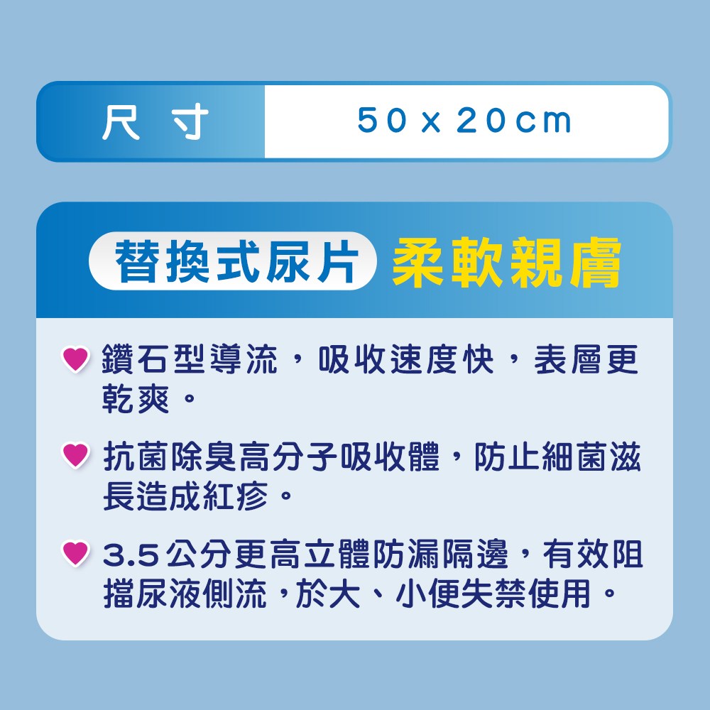 - 替換式設計,方便更換,保持乾淨衛生,減輕照護負擔,讓長輩隨時感到清爽。