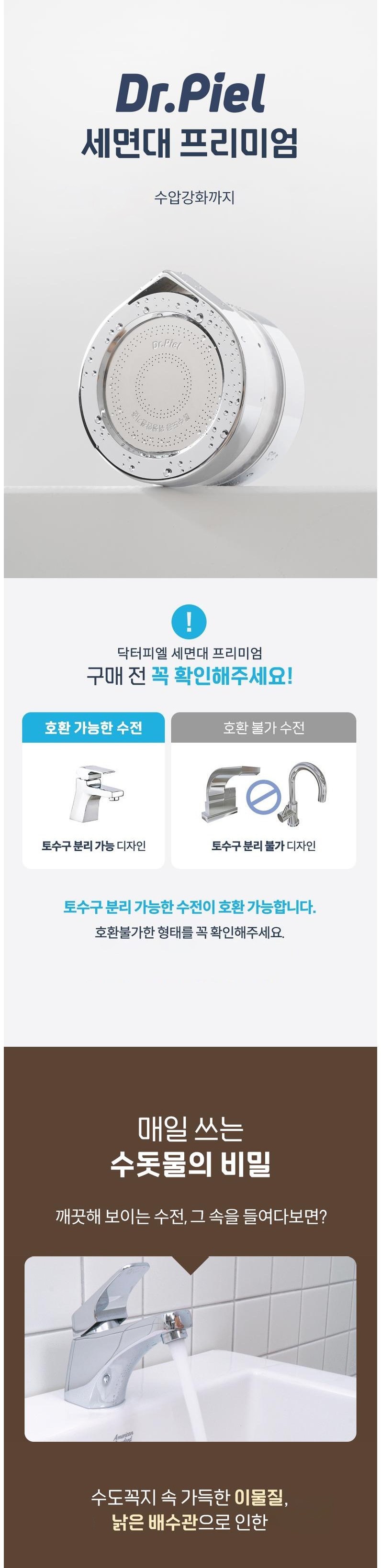 Dr.Piel 優質洗臉台替換濾芯提供更強大的過濾技術,解決自來水的雜質問題,讓您每天使用的水更乾淨。升級的濾芯容量和精密阻擋雜質技術,有效過濾細沙、鐵鏽等雜質,確保用水安全。超微細灑水板提供柔和水流與強勁水壓,提升洗臉舒適度。根據家庭用水情況,可選擇一般型或高級型濾芯,經濟又實惠。簡潔時尚的設計,讓您的浴室更加出眾。