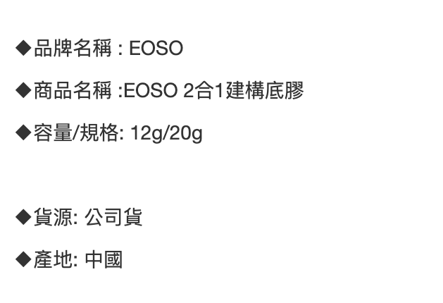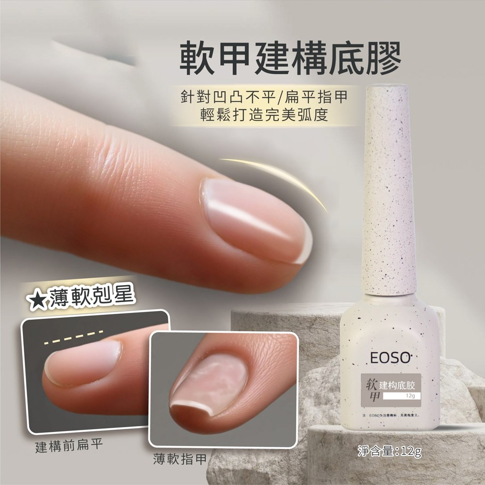 EOSO 2合1建構底膠是您打造完美指甲的秘密武器。它能有效保護甲面,加固脆弱指甲,讓指甲不易斷裂。針對凹凸不平的甲面,這款底膠能輕鬆填平,使指甲表面光滑,呈現自然光澤。其持久附著力強,不易翹邊,讓您的美甲造型更持久。此外,它還非常容易卸除,不傷甲面,讓您隨時更換指甲造型,呵護您的指甲健康。