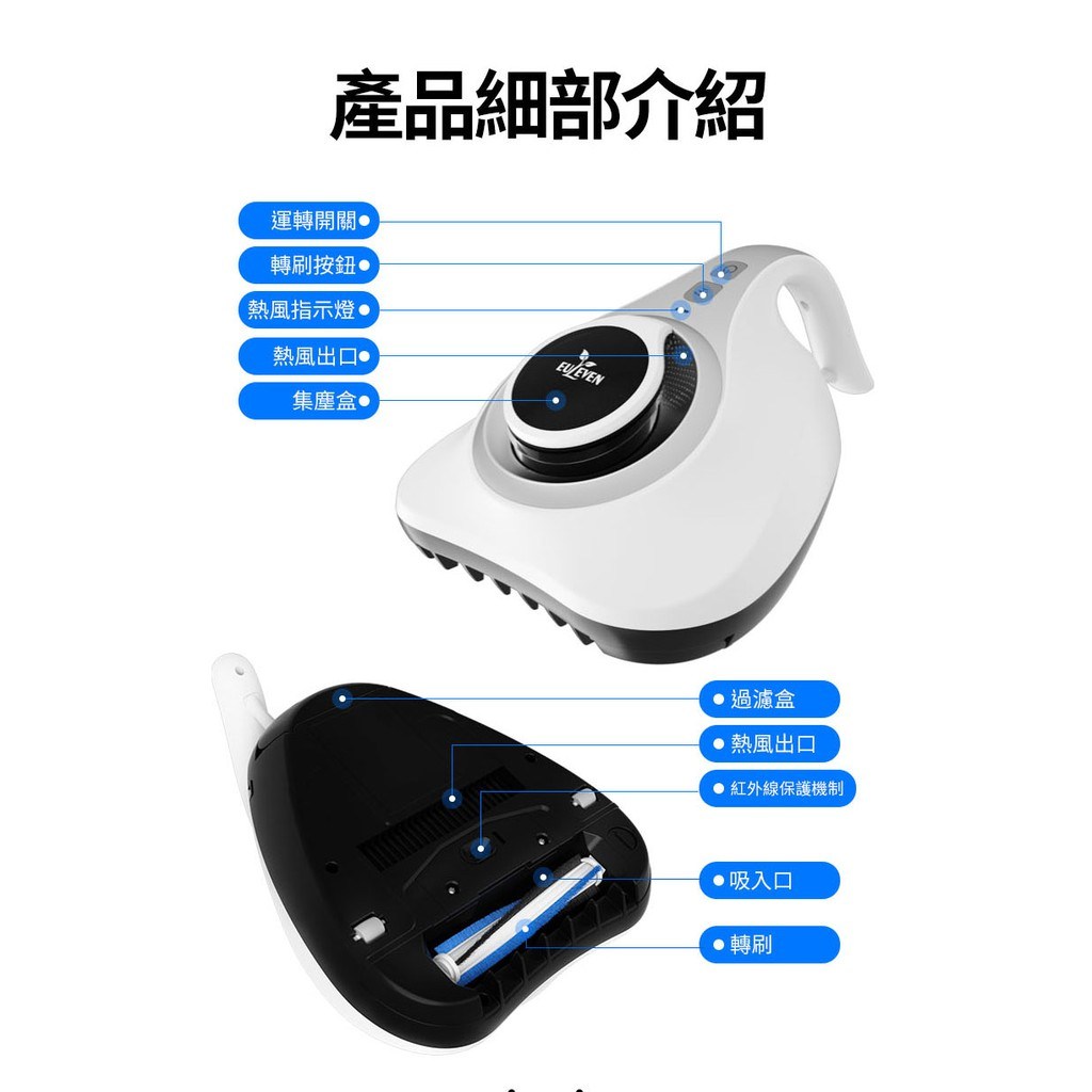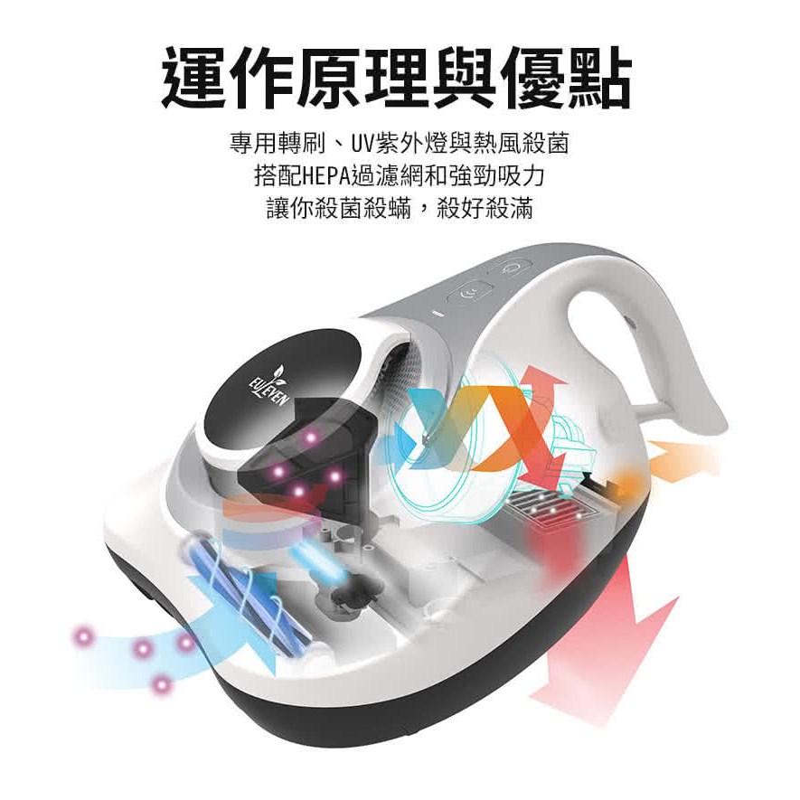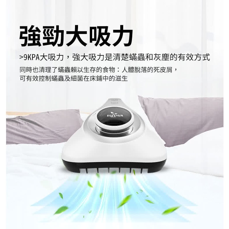 Euleven 有樂紛 旗艦款熱風除螨吸塵機,為您打造潔淨舒適的居家環境,能有效去除床墊、枕頭和沙發上的塵螨、細菌和過敏原。其強勁的吸力(>9KPA)能徹底清潔深層污垢,讓您告別過敏困擾,享受健康睡眠。此外,品質有保障,讓您買得安心,用得放心。一年原廠保固,讓您無後顧之憂。