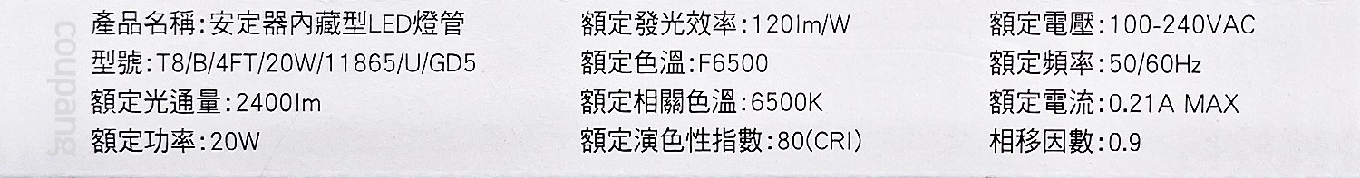 - - 20W的LED燈管節能省電,讓您享受明亮照明同時減少電費支出。