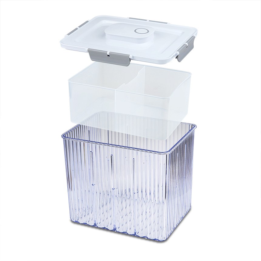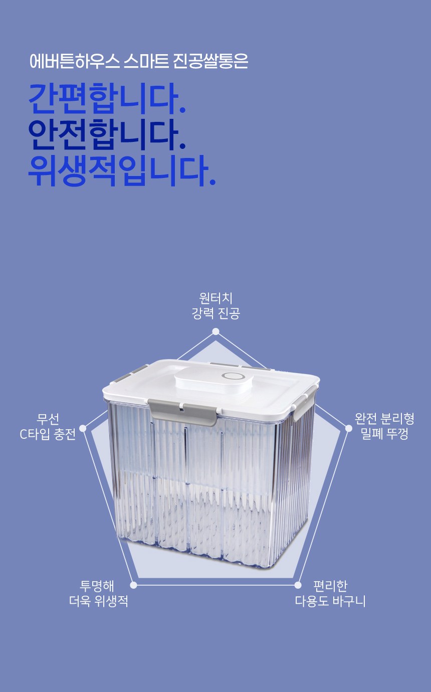 EVERTON HOUSE 智慧真空方形米桶採用先進真空技術,能有效隔絕空氣,保持米的新鮮度與美味。一鍵式操作簡便快捷,輕鬆完成真空儲存,讓您隨時都能享用到新鮮好米。分離式上蓋設計,方便清洗,確保儲米環境的衛生。7L容量設計,適合小家庭使用,節省空間。混色外觀時尚簡約,為您的廚房增添美感。
