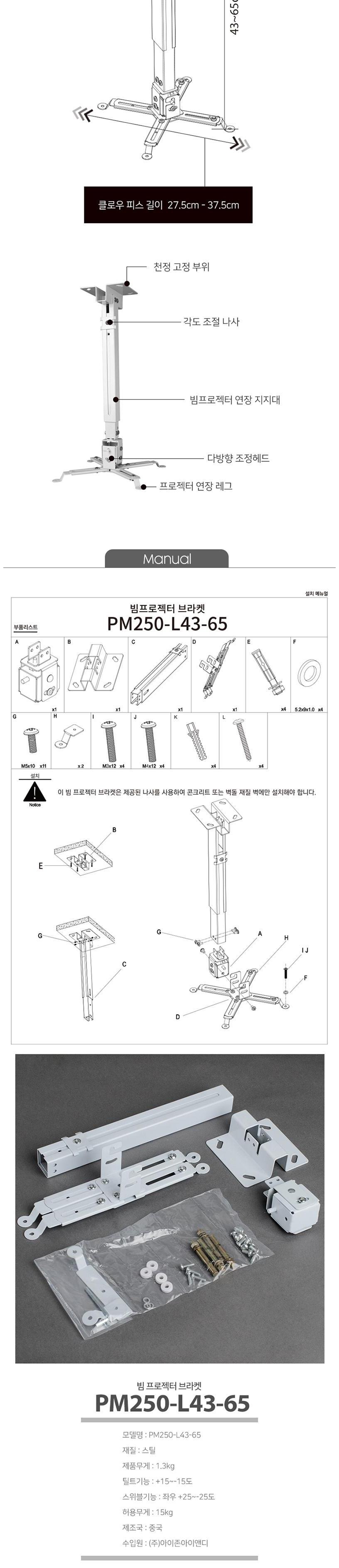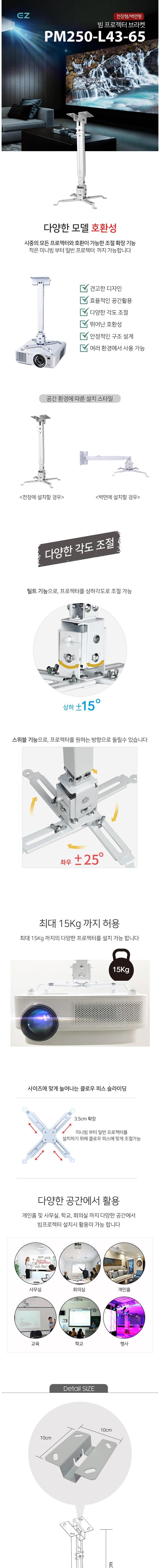 EZ 天花板壁掛式投影機支架 PM250-L43-65 是一款多功能且堅固的支架,適用於各種投影機。它具有可調節的擴展功能,兼容市面上多種型號的投影機,從小型迷你投影機到一般投影機皆可使用。此支架採用堅固的結構設計,能有效利用空間,並提供多樣的角度調節,讓您根據空間環境調整安裝風格。無論是安裝在天花板或牆壁上,都能透過傾斜和旋轉功能,將投影機調整到最佳觀看角度。最大承重為 15 公斤,適用於家庭、辦公室、學校和會議室等多種場合。