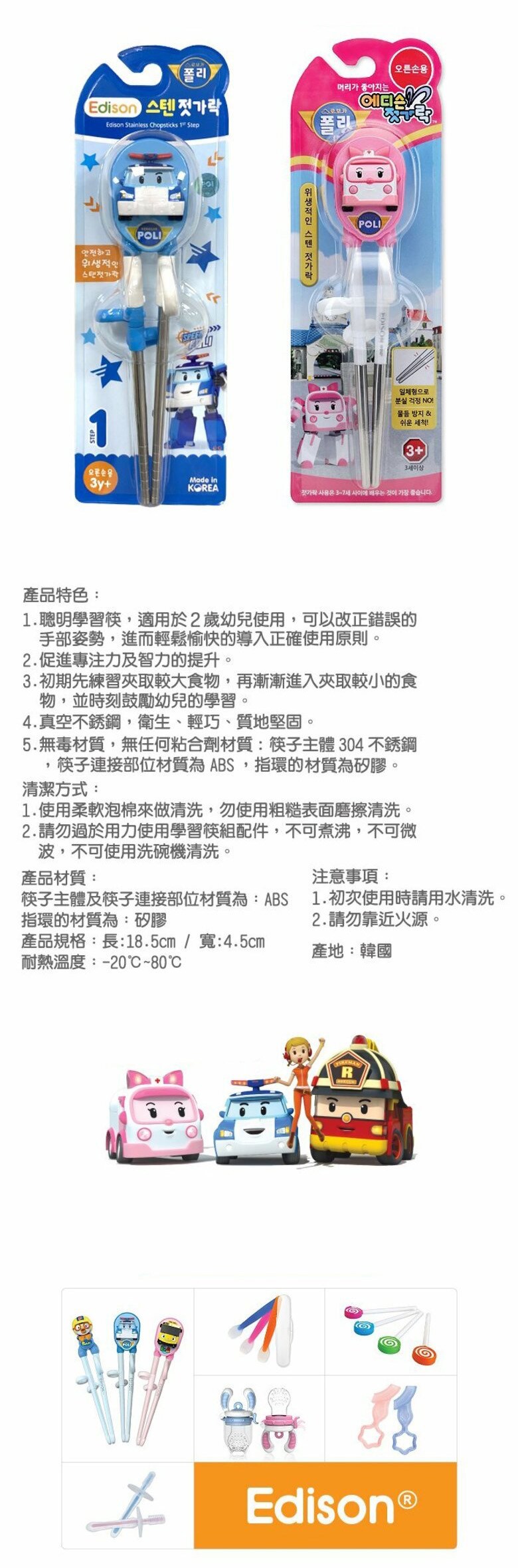 讓您的孩子愛上用餐時光!Edison Poli 波力救援小英雄不鏽鋼兒童學習筷,專為3歲以上、想學習使用筷子的孩子設計。可愛的粉色安寶造型,讓用餐變得更有趣。採用304不鏽鋼材質,安全衛生,讓您安心。獨特的3D立體設計,符合人體工學,幫助孩子輕鬆掌握正確握筷姿勢。18.5公分的長度,適合孩子的小手,讓他們更容易夾取食物。有了這款學習筷,孩子們可以更快學會使用筷子,享受獨立用餐的樂趣!