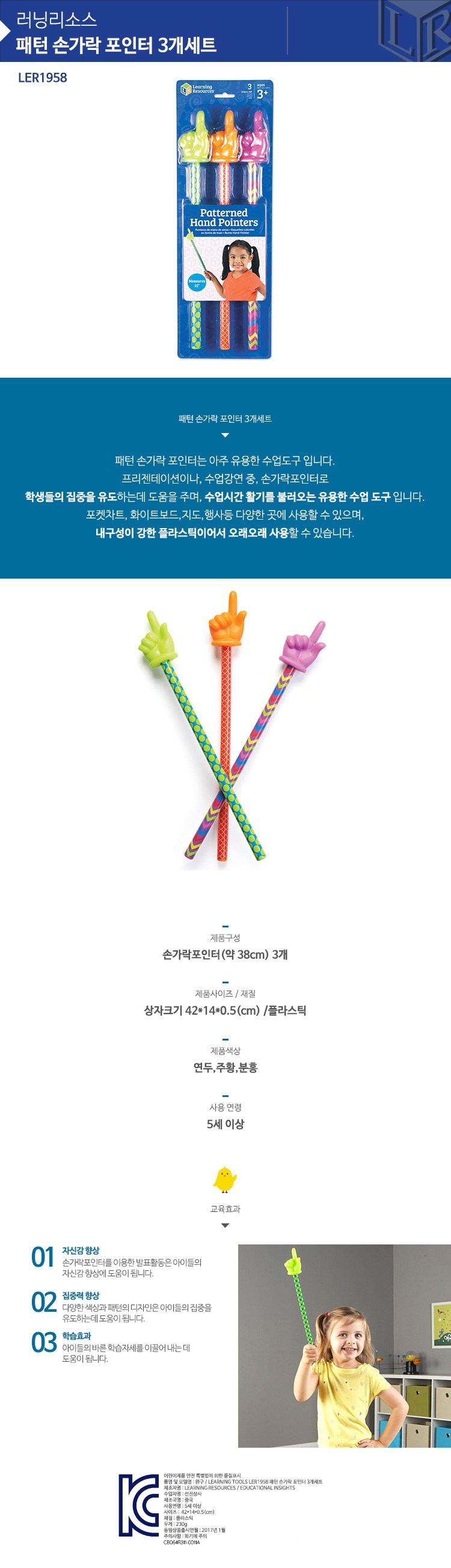 Educational Insights 模式手指指針套組包含三個彩色手形指示棒,非常適合課堂教學和簡報使用。這些指示棒不僅能有效引導學生的注意力,還能提升孩子的自信心,讓他們更樂於參與學習活動。多樣的顏色和圖案設計有助於激發孩子的學習興趣,並幫助他們養成正確的學習姿勢。產品由耐用的塑膠製成,可長期使用,是教師和家長們的理想選擇。適用於口袋圖表、白板、地圖等多種場合,為教學注入更多活力。