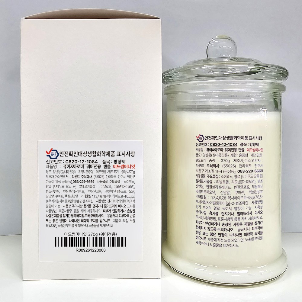 Ein.D 蠟燭百貨 摩登立方融蠟燈 + 370g 大豆蠟燭套組, 仲夏之夜, 白色