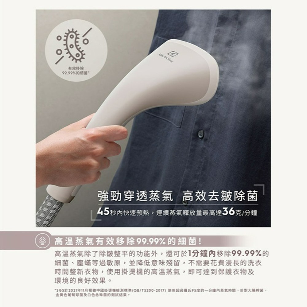 Electrolux 伊萊克斯直立式蒸氣掛燙機,是您居家生活的理想選擇。1600瓦大功率快速產生蒸氣,輕鬆撫平衣物皺褶,節省您的寶貴時間。直立式設計操作簡單方便,無需彎腰,讓您享受輕鬆熨燙的樂趣。適用於多種面料,無論是絲綢、羊毛還是棉麻,都能呵護您的衣物。高溫蒸氣有效去除異味,讓您的衣物清新如新,散發迷人魅力。