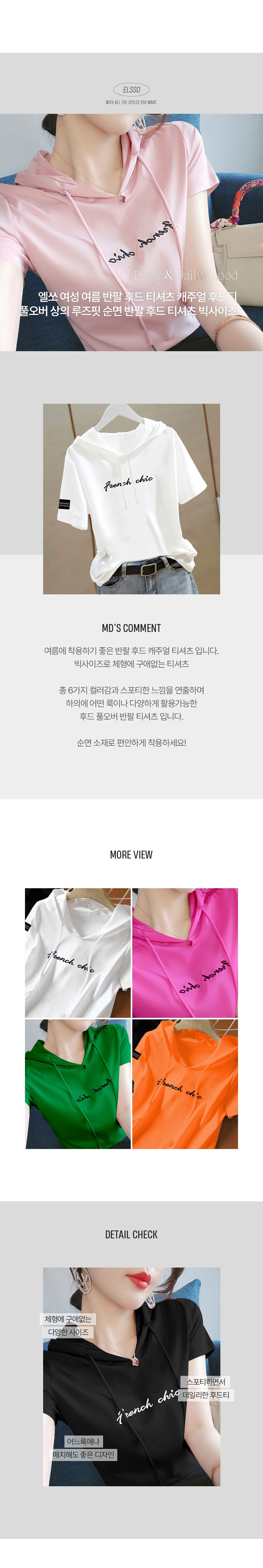 Elso 女款夏季休閒套頭寬鬆純棉大尺碼短袖連帽T恤