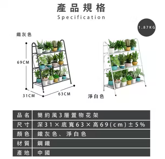 - 三層設計提供充足空間,輕鬆展示您心愛的花卉盆栽,打造獨特綠意角落。