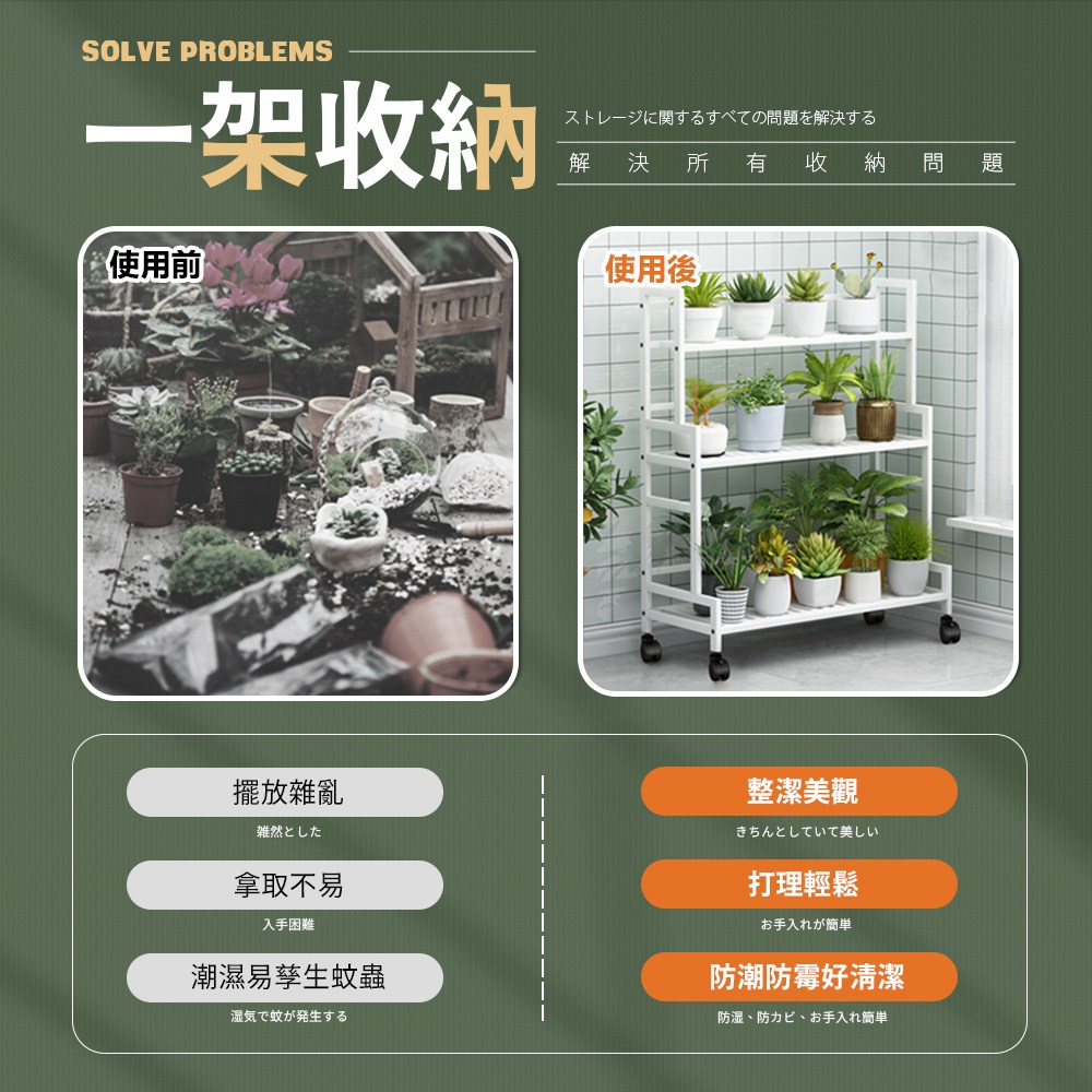 - 階梯式設計方便展示多種盆栽,讓您的植物們享受充足的陽光,打造生機盎然的居家角落。