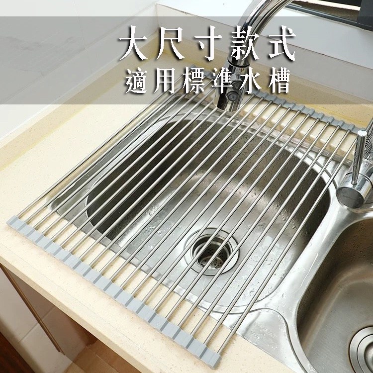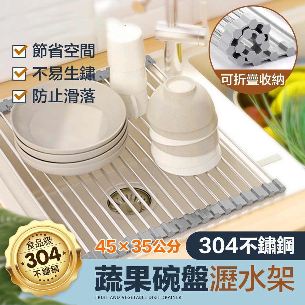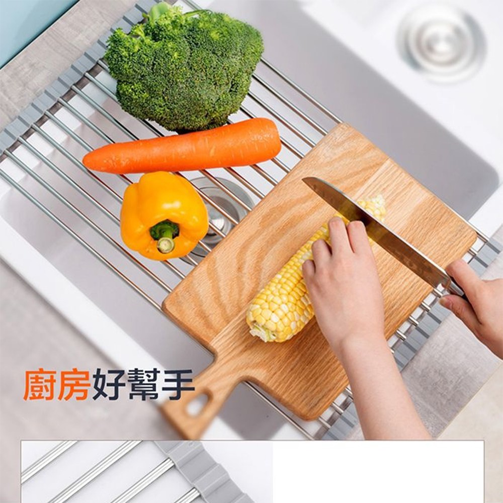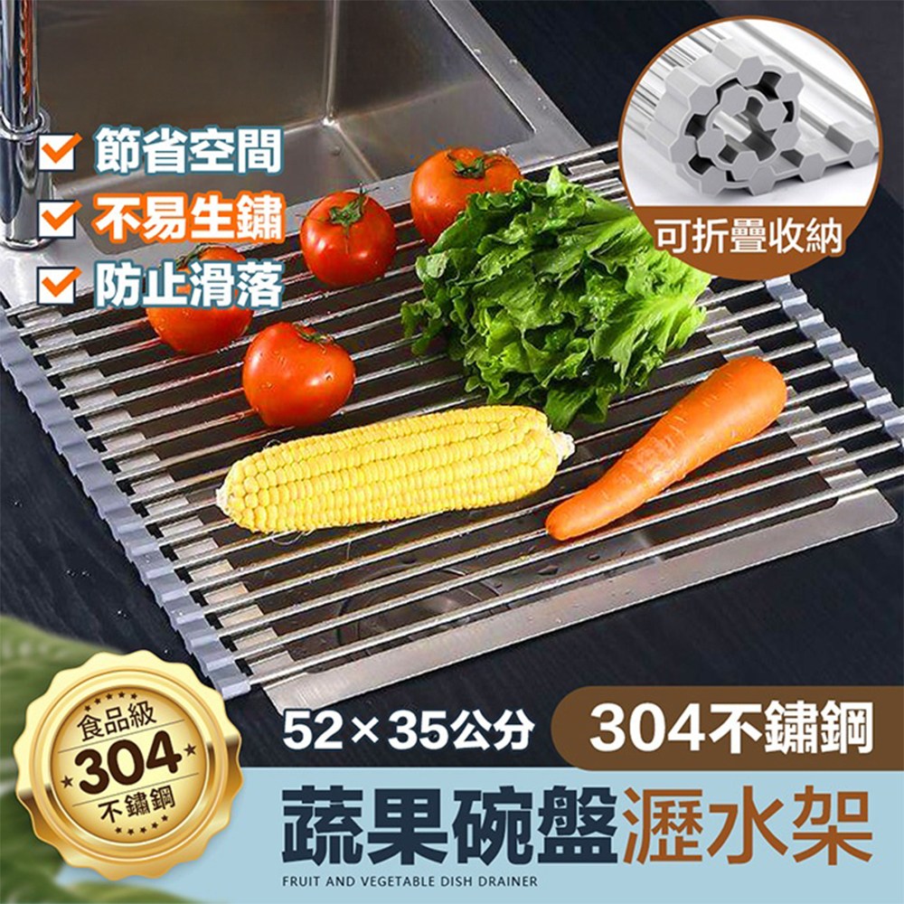 FL 生活+ 304不鏽鋼蔬果碗盤瀝水架,XL尺寸(52 x 35 x 1公分),是您廚房的得力助手。採用食品級304不鏽鋼材質,堅固耐用,不易生鏽,讓您安心使用。灰色簡約設計,輕鬆融入各種廚房風格。此瀝水架不僅可瀝乾蔬果,還能放置碗盤,一物多用,節省廚房空間。捲簾式設計,方便收納,不佔空間,是現代家庭的理想選擇。