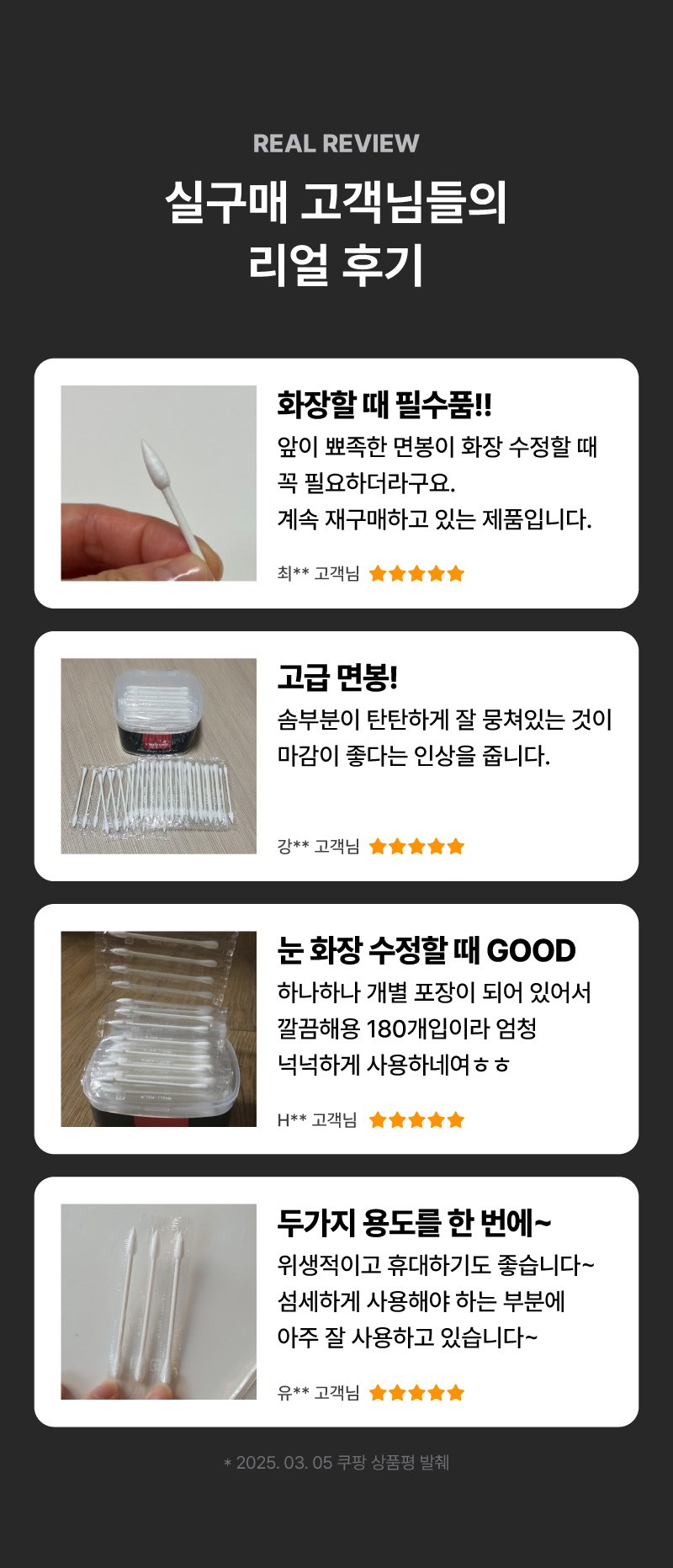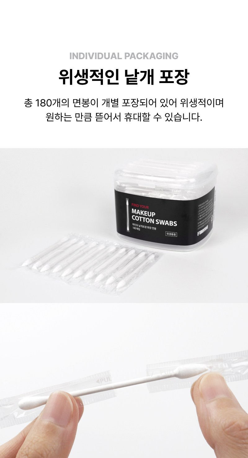 FINDYOU化妝棉棒採用獨立包裝,確保每支棉花棒的衛生與清潔,讓您使用更安心。雙頭設計,結合錐形與圓形棉頭,滿足您清潔與修飾妝容的多重需求。柔軟的純棉棉頭,溫和呵護您的肌膚,有效去除汙垢與殘妝。紙棒材質堅韌不易斷裂,使用更安全。無論是日常清潔還是精緻妝容,FINDYOU化妝棉棒都是您的理想選擇。一盒180入,經濟實惠,是您化妝包中不可或缺的必備品。