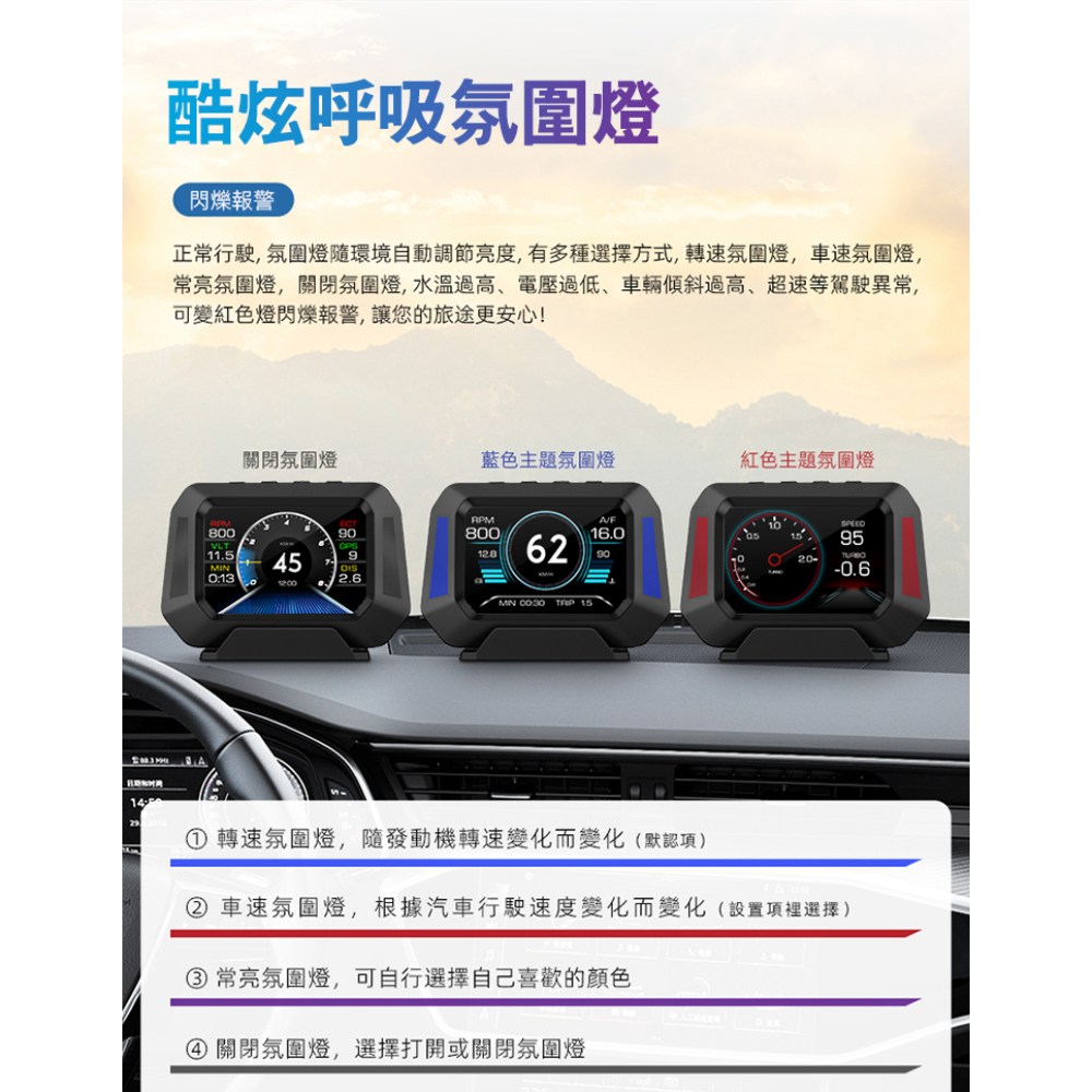 - 坡度儀功能:精準顯示車輛傾斜角度,輔助駕駛者判斷路況,尤其適用於山路行駛。