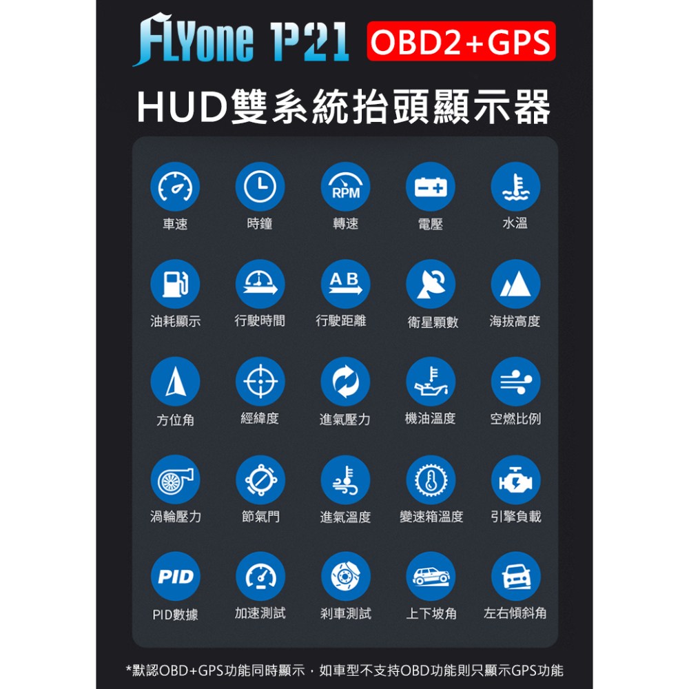 FLYone P21 多模式汽車抬頭顯示器 OBD2 + GPS + 坡度儀 HUD雙系統 4吋, 1個, 黑色