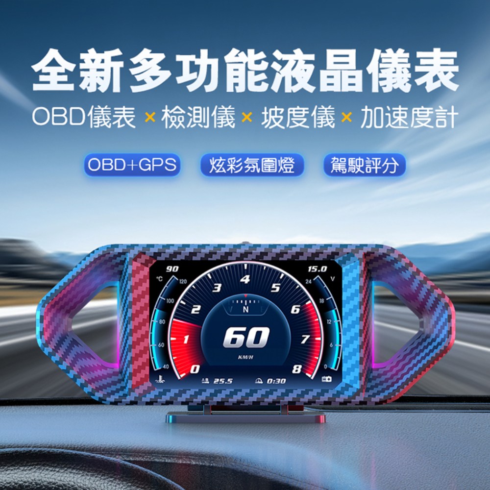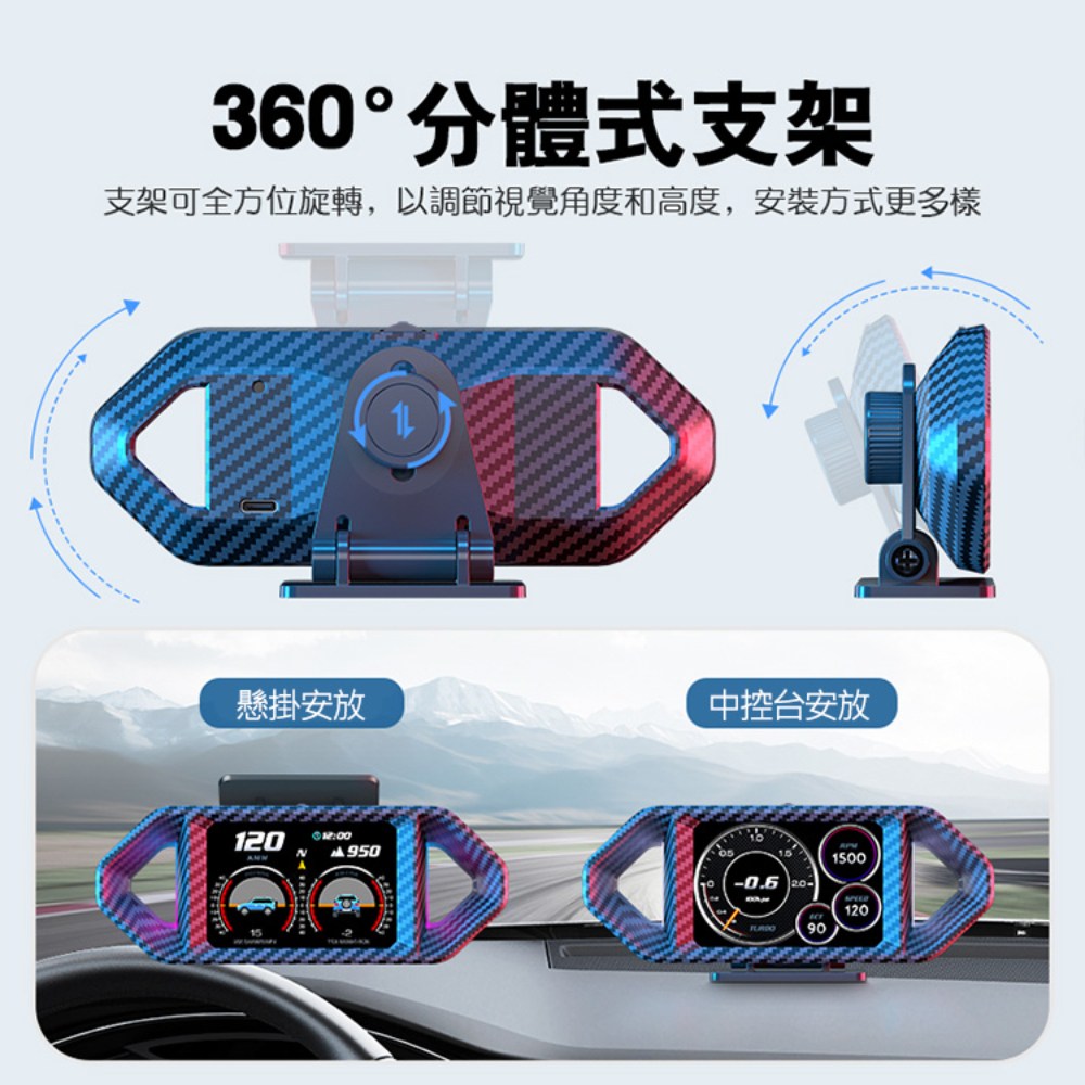- 內建坡度儀與加速度計,即時監測車身傾斜角度,提升駕駛安全性。
