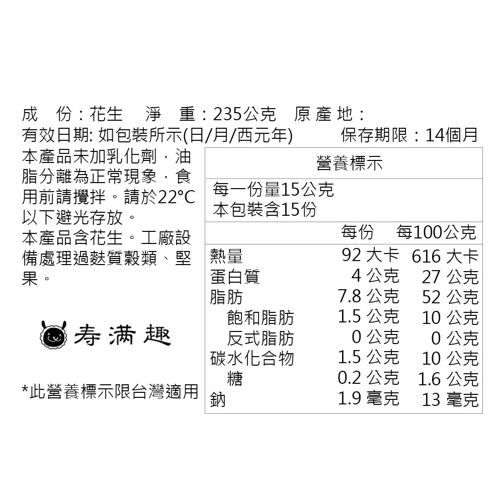 - 百分之百純花生製成,不含任何人工添加物,讓您吃得安心又健康無負擔。